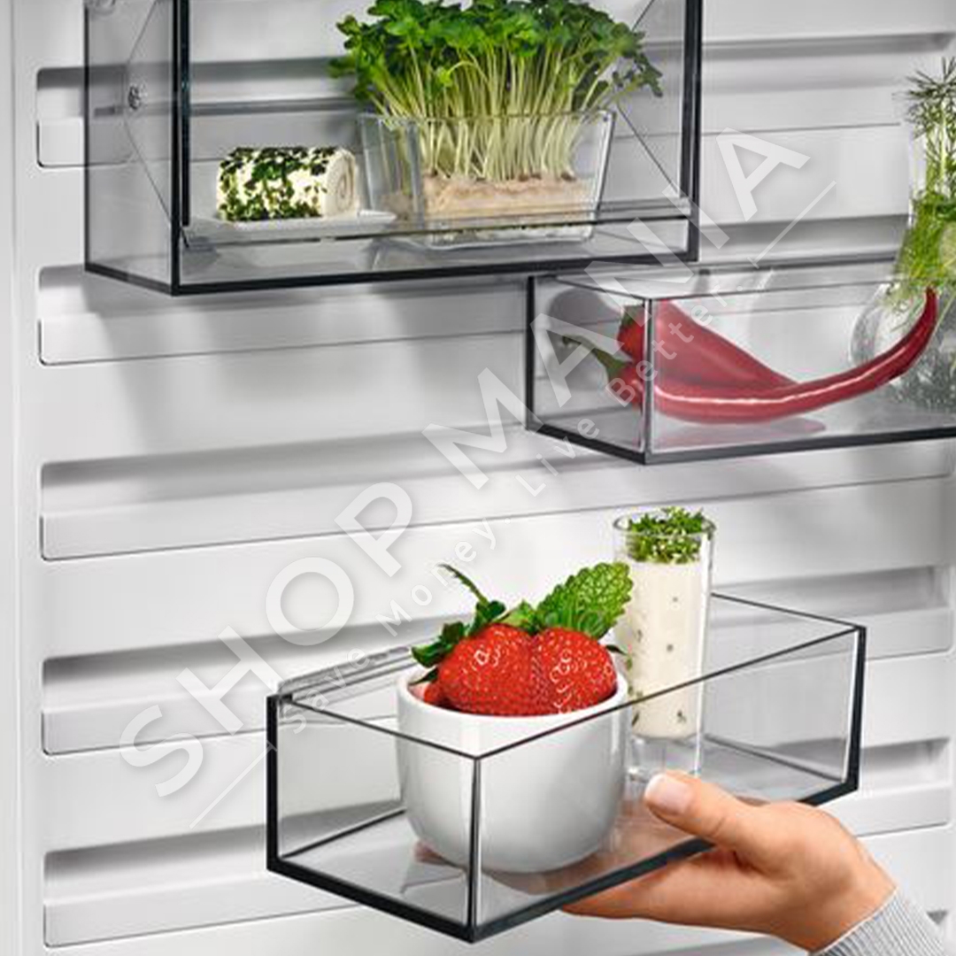 Frigorifer AEG me teknologjine e ftohjes Cooling 360° siguron temperature dhe lageshti te qendrueshme ne cdo cep te frigoriferit, duke bere qe ushqimet te ruajne ngjyren, vlerat ushqyese per me shume kohe.