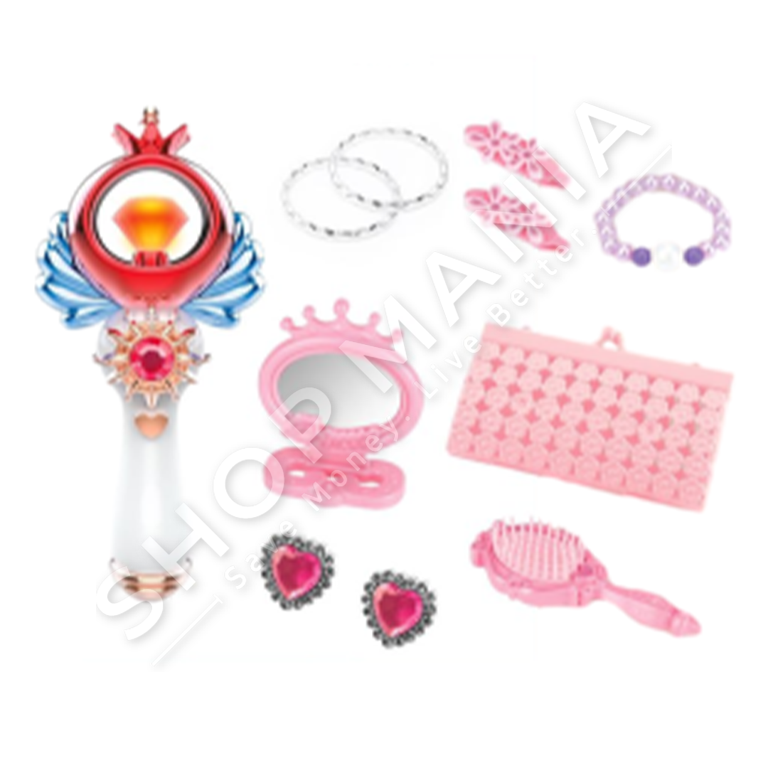 Ne paketim perfshihen aksesoret e bukurise si: shkop magjik, 1 pale vathe, byrzylyke, pasqyre, kreher flokesh, cante e vogel dhe 2 karfica.