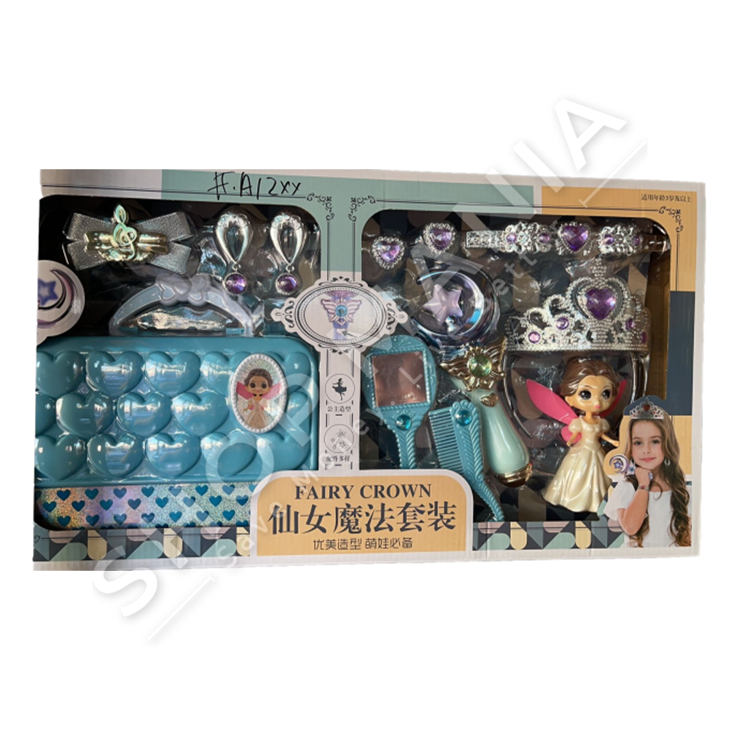 Ne paketim perfshihen aksesoret e bukurise si: shkop magjik, vathe, byrzylyke, pasqyre, kreher flokesh, cante e vogel, 2 karfica, kurore, fjongo dhe nje kukull zane.