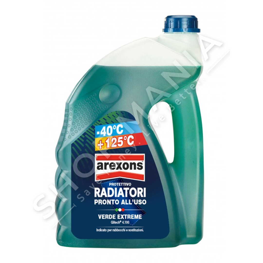 Antifriz Arexons per mbrojtjen e radiatorit ne ngjyre jeshile. Siguron mbrojtje kunder ngrirjes deri ne temperaturen -40°C, mbrojtje kunder vlimit deri ne temperaturen +125°C. Efekt anti-gerryes, anti-shkume, anti-kavitacion dhe anti-zmerc ne motor dhe ne pjeset e sistemit te ftohjes. Perdoret tek motoret e rinj te naftes dhe benzines, multivalvola, turbokompresore, me injeksion direkt ose indirekt dhe cammon-rail. Mund te perdoret per shtim niveli ose per te nderruar plotesisht antifrizen.