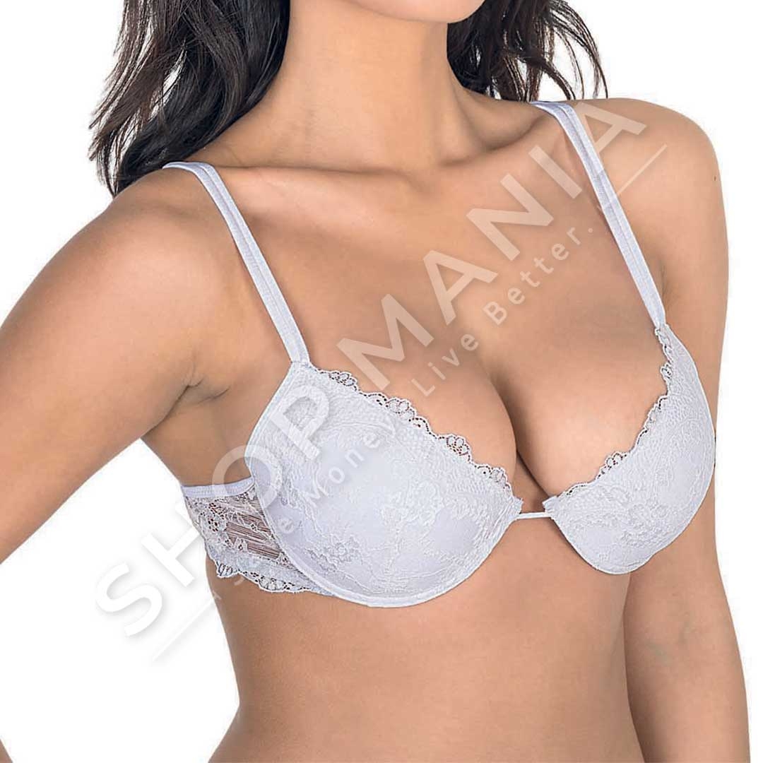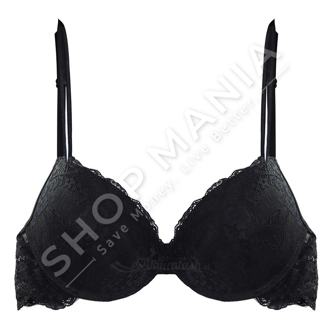 Recipeta push-up me rripa te rregullueshem ne gjatesi. Me nje dizajn me dantelle tek rripat anesore dhe ne siperfaqen e kupave. Me mbushje xhel per nje efekt natyral dhe mbeshtetje optimale.