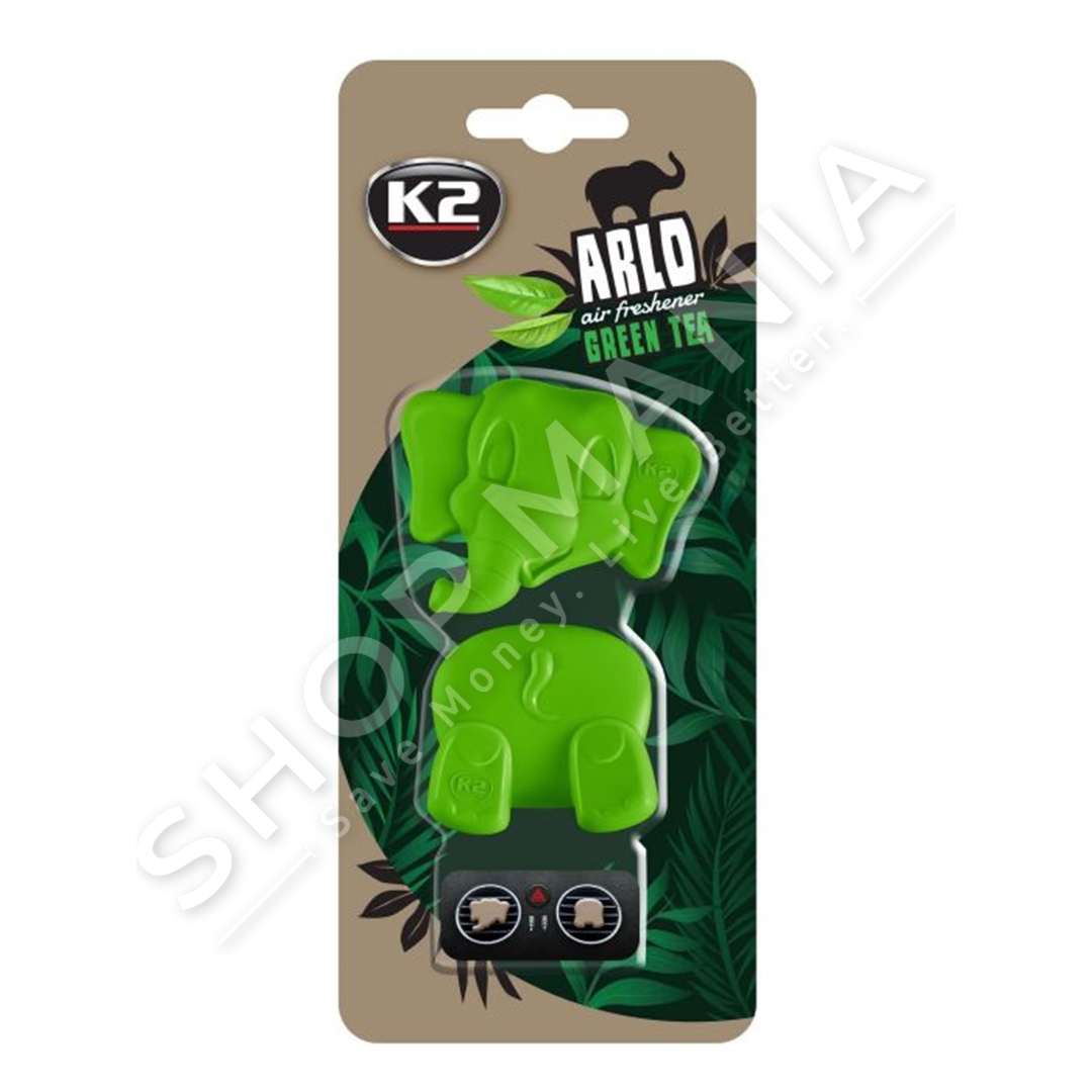 Air Freshener nga K2 Arlo eshte nje aromatik ne forme elefanti per makina qe vendoset tek grilat e ajrit te kondicionuar. Aromatiku i ajrit permban dy elemente kapese (koken dhe pjesen e pasme te elefantit). Nuk le njolla ne duar, dhe eshte i sigurte per te gjitha plastikat dhe lekuren.