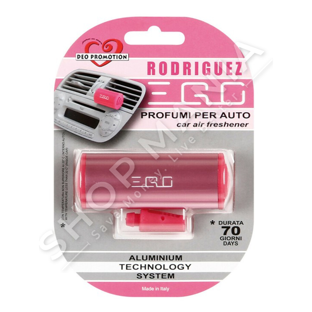 Air Freshener nga EGO eshte nje aromatik per makina qe vendoset tek grilat e ajrit te kondicionuar. Eshte krijuar qe te mos ndikoje ne kontrollin dhe levizjen e ketyre grilave dhe eshte i pershtatshem per cdo lloj grilash. Aroma e tij zgjat deri ne 70 dite, dhe eshte mire te vendoset ne temperatura jo me te larta se 22°C brenda makines.