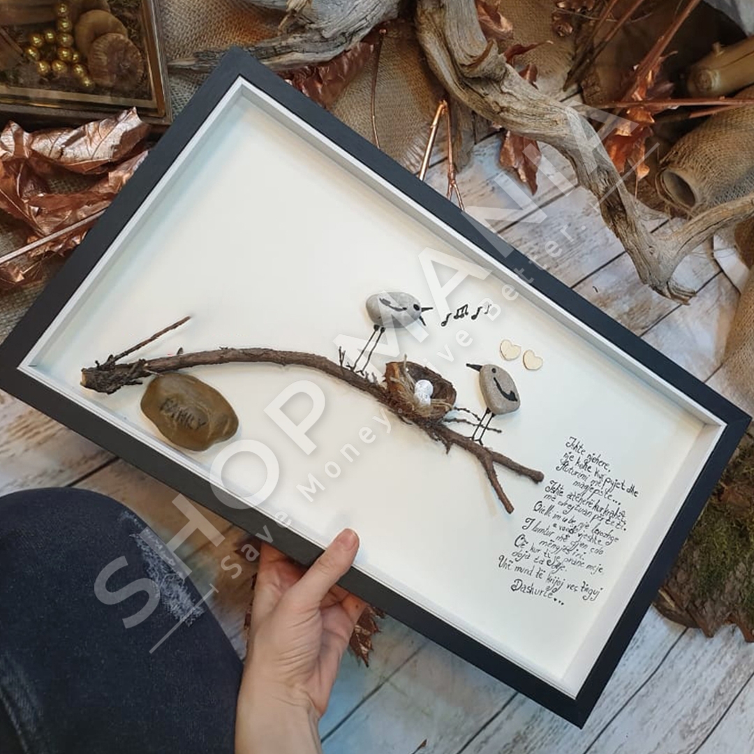 Arti i gurit "Kenga e dashurise" eshte nje krijim me gur, dru dhe vizatim, nje projekt unik qe mund te personalizohet me dedikime te ndryshme.