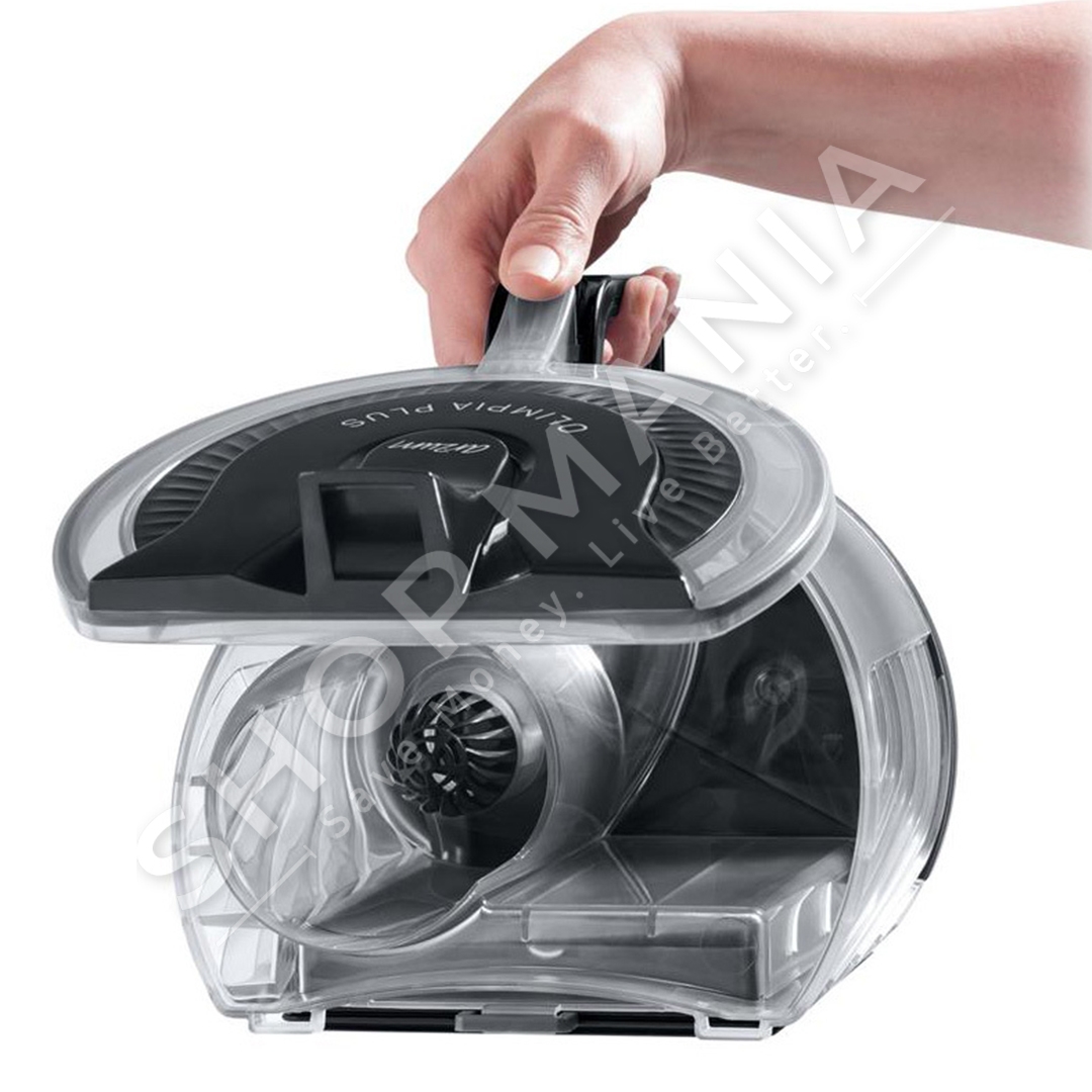 Pasi keni perfunduar te gjithe pastrimin, kontenieri i pluhurit me kapacitet 2.2 L mund te hiqet me nje buton te vetem dhe te zbrazet lehtesisht.