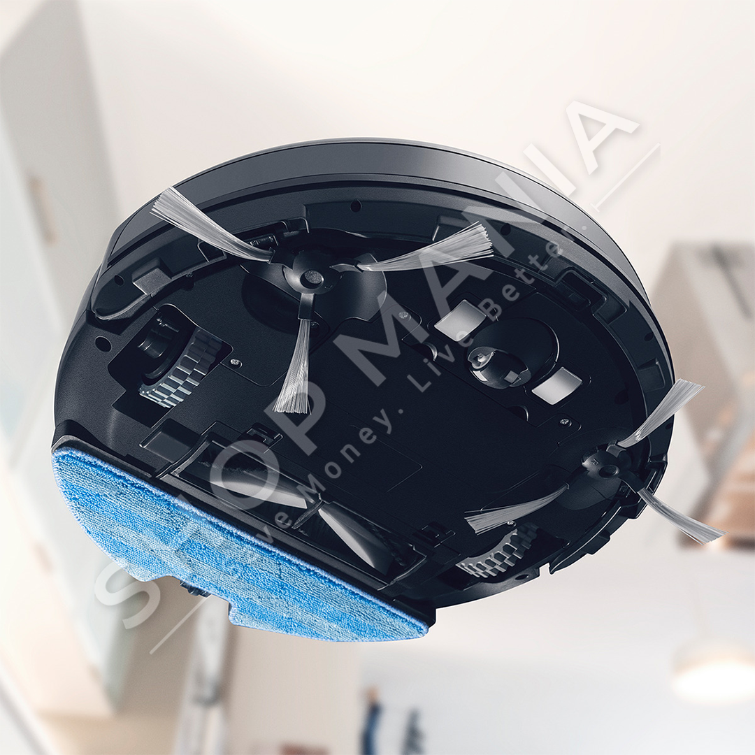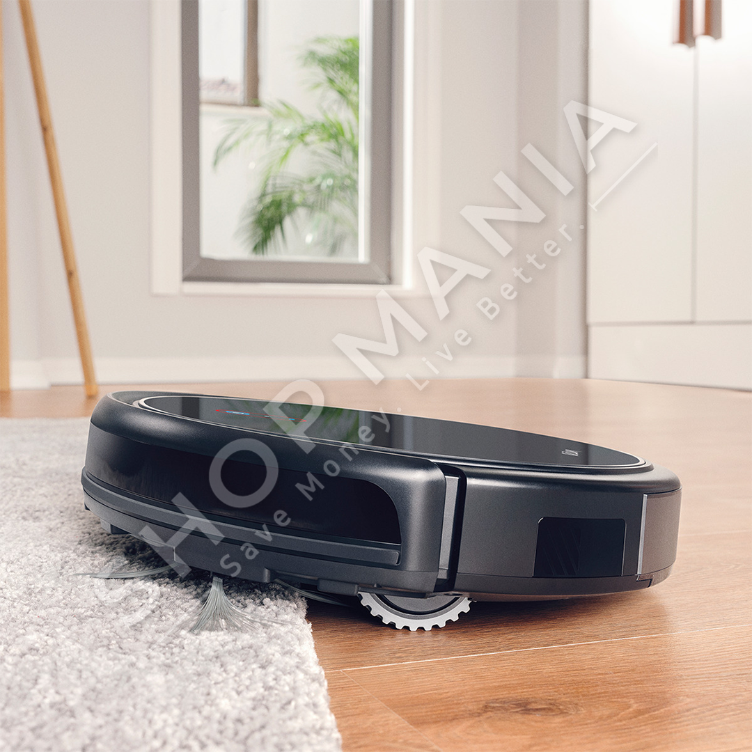 Fshesa robot fshin me furcat anesore, kap pluhurin me sistemin e saj rrotullues te furces, pastron thellesisht me vakum dhe siguron pastrim 4ne1 duke fshire me nje lecke.