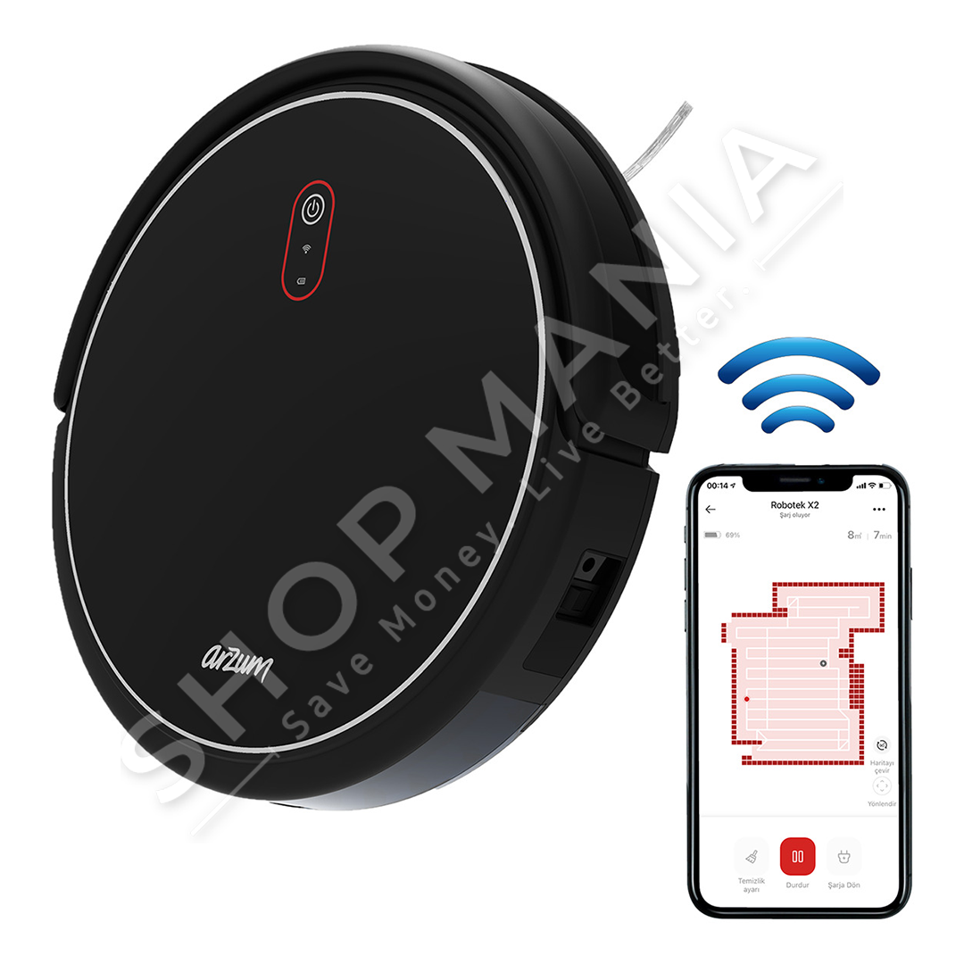 "Arzum Ar4301 Robotek X2 Smart Robot Vacuum Cleaner with Mop - Black" eshte fshesa me korent robotike inteligjente e cila ju lejon te pastroni pa mundim cdo cep te shtepise suaj.