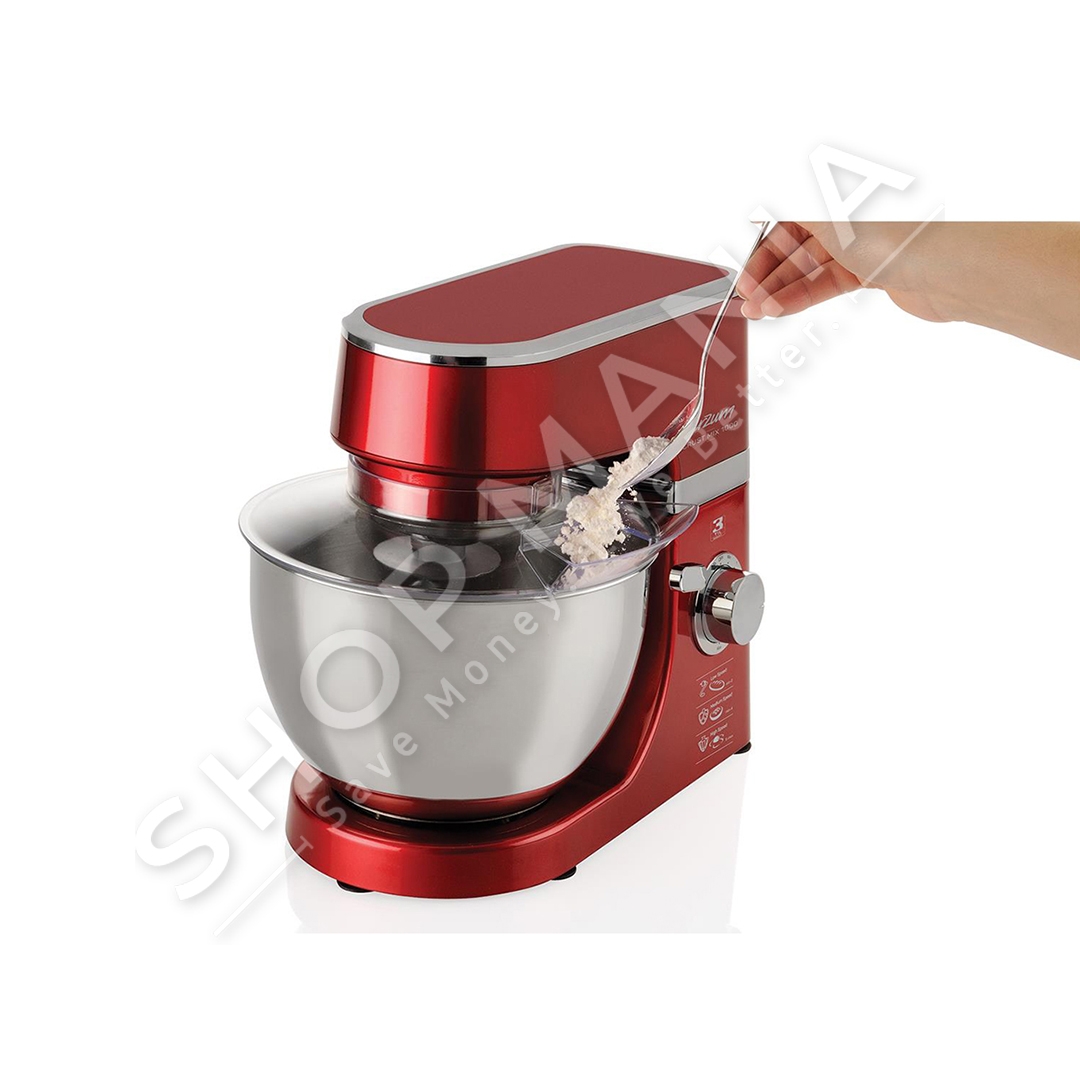 Kombinati me 3 funksione: rrahes, perzieres brumi dhe mikser, eshte ajo qe i mungon kuzhines tuaj. Vjen me 8 nivele shpejtesie dhe me kapak te papershkrueshem nga uji. Vjen se bashku me 3 aksesoret e ndryshem per rrahje, perzierje brumi dhe mikser dhe me enen prej celik inoksi me kapacitet 4.5 L. Fale butonit te kontrollit te shpejtesise, mund te perzieni, te rrahni me shpejtesi te ndryshme per ushqime te ndryshme.