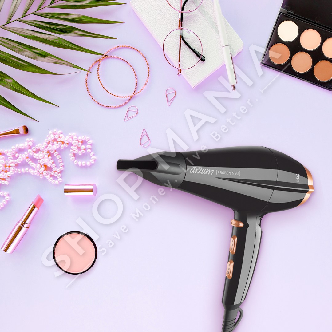 Per floke me volum dhe te shendetshme, zgjidhni tharesen nga SHOP MANIA. Nuk keni pse te shqetesoheni me, pasi me tharesen Arzum Profon Neo ju mund te beni floke te drejte dhe kacurrela ne shtepi ne shume pak kohe. Me fuqi 2300 W dhe me filter te levizshem qe pastrohet lehte. Me 3 nivele temperature dhe 2 nivele shpejtesie dhe me funksionin e ajrit te ftohte.