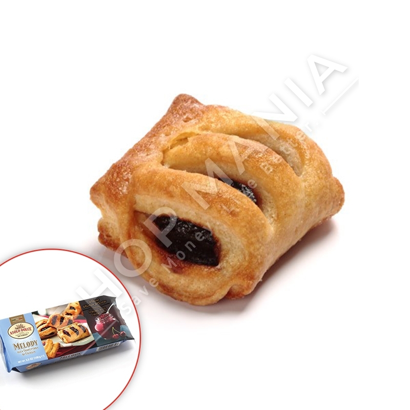 Strudel me qershi nga marka Asolo Dolce eshte nje embelsire e vogel e mbushur me 40% recel qershie me shije natyrale te distiluar nga fruti.