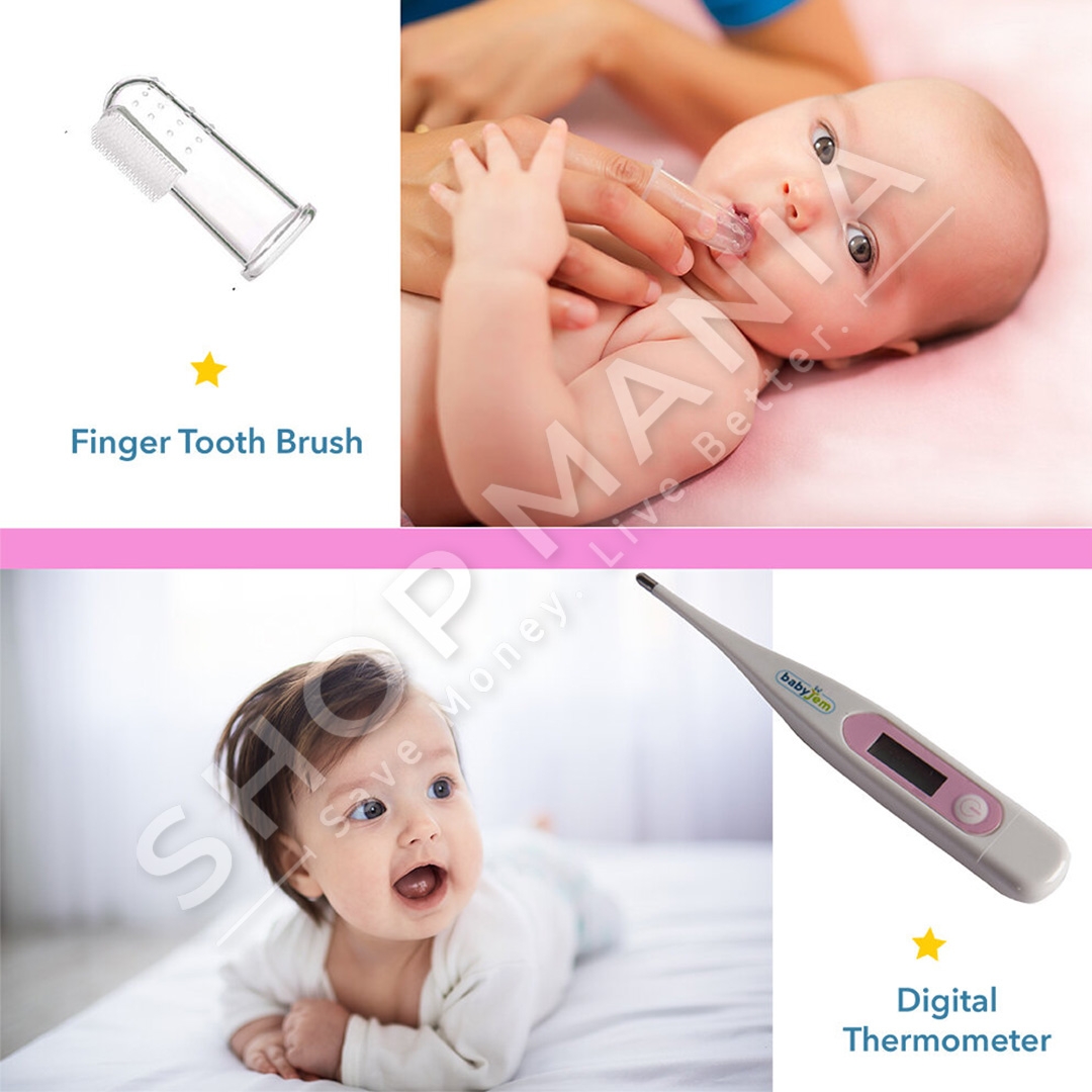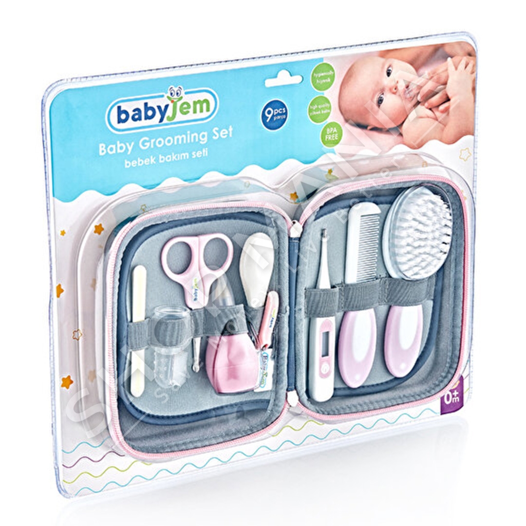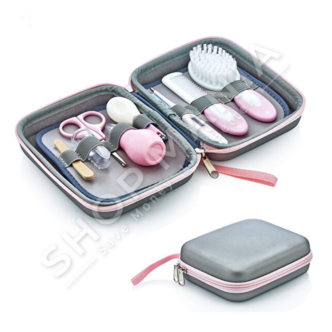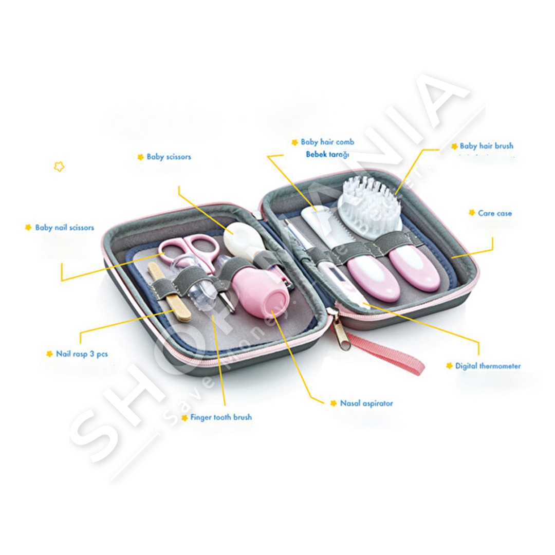 Set kujdesi per bebe, i domosdoshem per higjenen e femijes tuaj kudo ku shkoni. Seti permban: furce dhembesh me gisht, kreher flokesh, termometer dixhital, gershere per thonjte, zhbllokues hundesh, prerese thonjsh, furce flokesh dhe canten mbrojtese. Seti vjen ne 2 ngjyra: Roze dhe Blu. Te gjitha produktet e setit pastrohen lehtesisht.