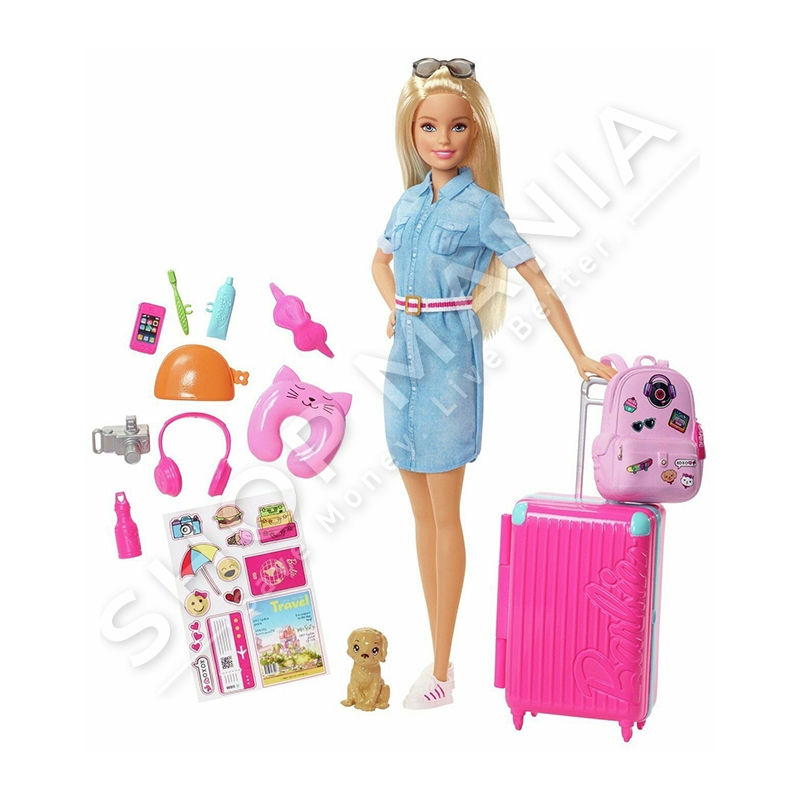 Kukulla Barbie eshte gati te udhetoje dhe vizitoje vende te ndryshme duke veshur nje kemishe xhins, nje rrip shumengjyresh dhe atlete te modes qe perputhen me stilin e saj.