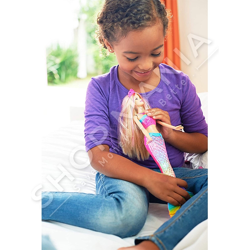 Nje kukull e vecante sirene qe mund te zhytet ne det per te pare shkelqimin e bishtit te saj me drita shumengjyreshe te frymezuara nga ylberi.