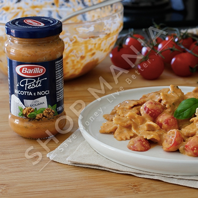 Koncentrat domate , tul domate, Grana Padano PDO (qumesht, lizozime veze), ricotta 20% (hirre, qumesht), borziloku 3.8%, arra 5%, caushe 2,4%, kripe, niseshte orizi, korrigjuesi i aciditetit: acid laktik ,pluhur dhalle (qumesht), hudher, pluhur hirri, arome natyrale (qumesht), shurup glukoze, sheqer, vaj luledielli.