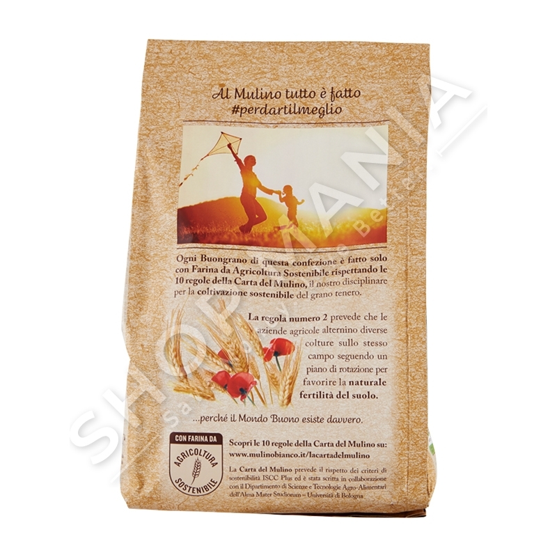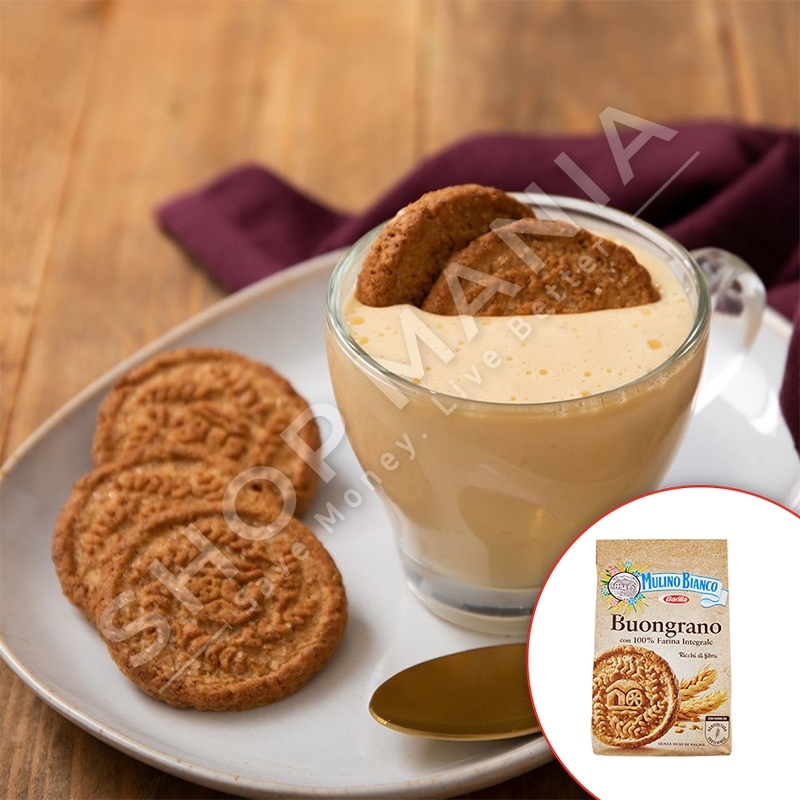 Biskota Buongrano te shijshme nga Barilla me miell integral, mjalt dhe sheqer kafe.