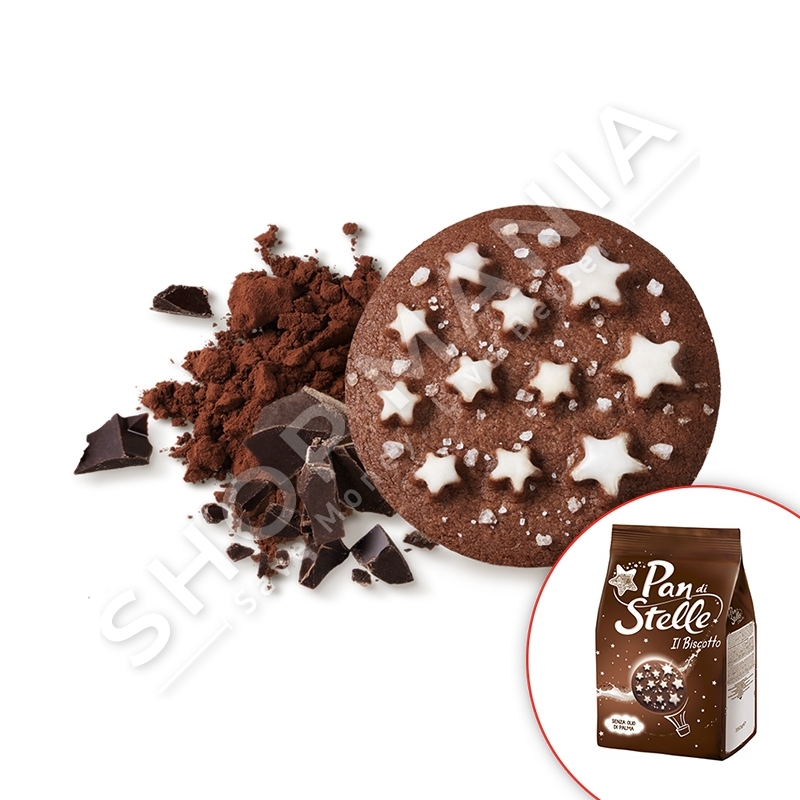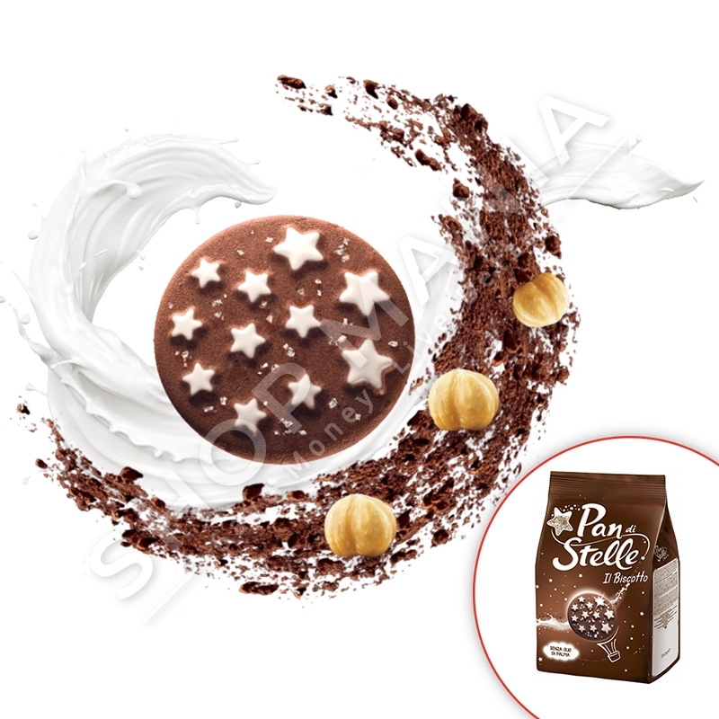 Biskota te shijshme te bera nga nje recete italiane me cokollate dhe lajthi te zbukuruara me yje sheqeri.