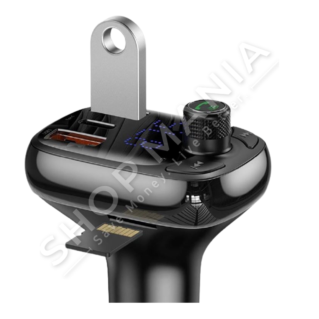 Karikues makine qe kryen tre funksione: perdoret si transmetues FM, MP3 si dhe te karikoni tre smartphone fale tre hyrjeve USB. Lidhet me smartphonin tuaj me Bluetooth dhe mund te vendosni muziken qe deshironi per ta degjuar ne makinen tuaj. Lidhet gjithashtu me smartphonin dhe mund te kryeni telefonata ose te merrni telefonata.