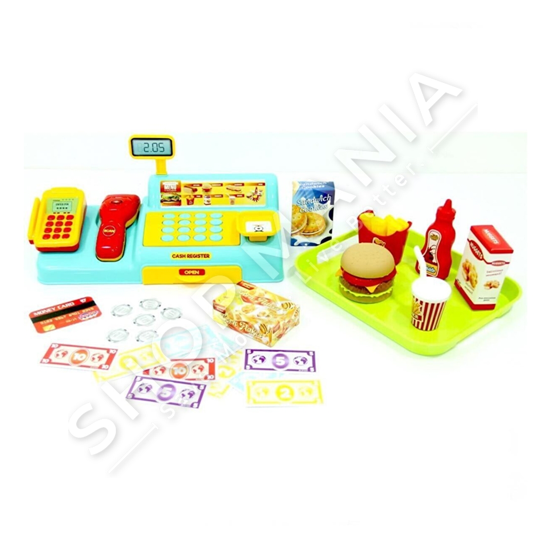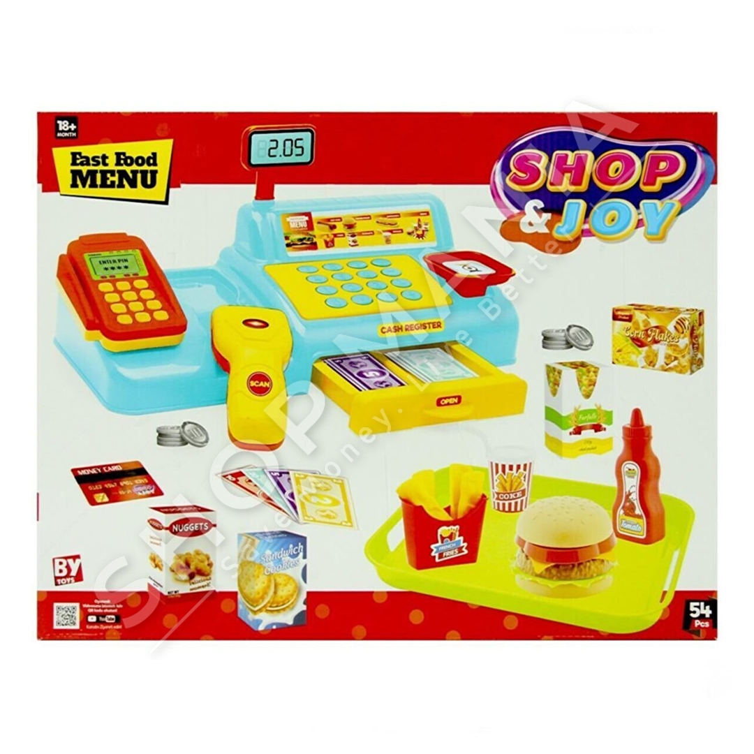 "Bayraktar Shop & Joy My First Cash Register Burger Menu Set" eshte loje argetuese per femijet mbi 3 vjec.