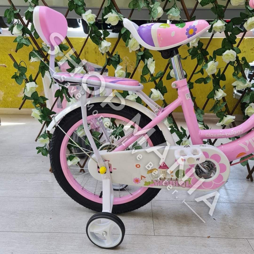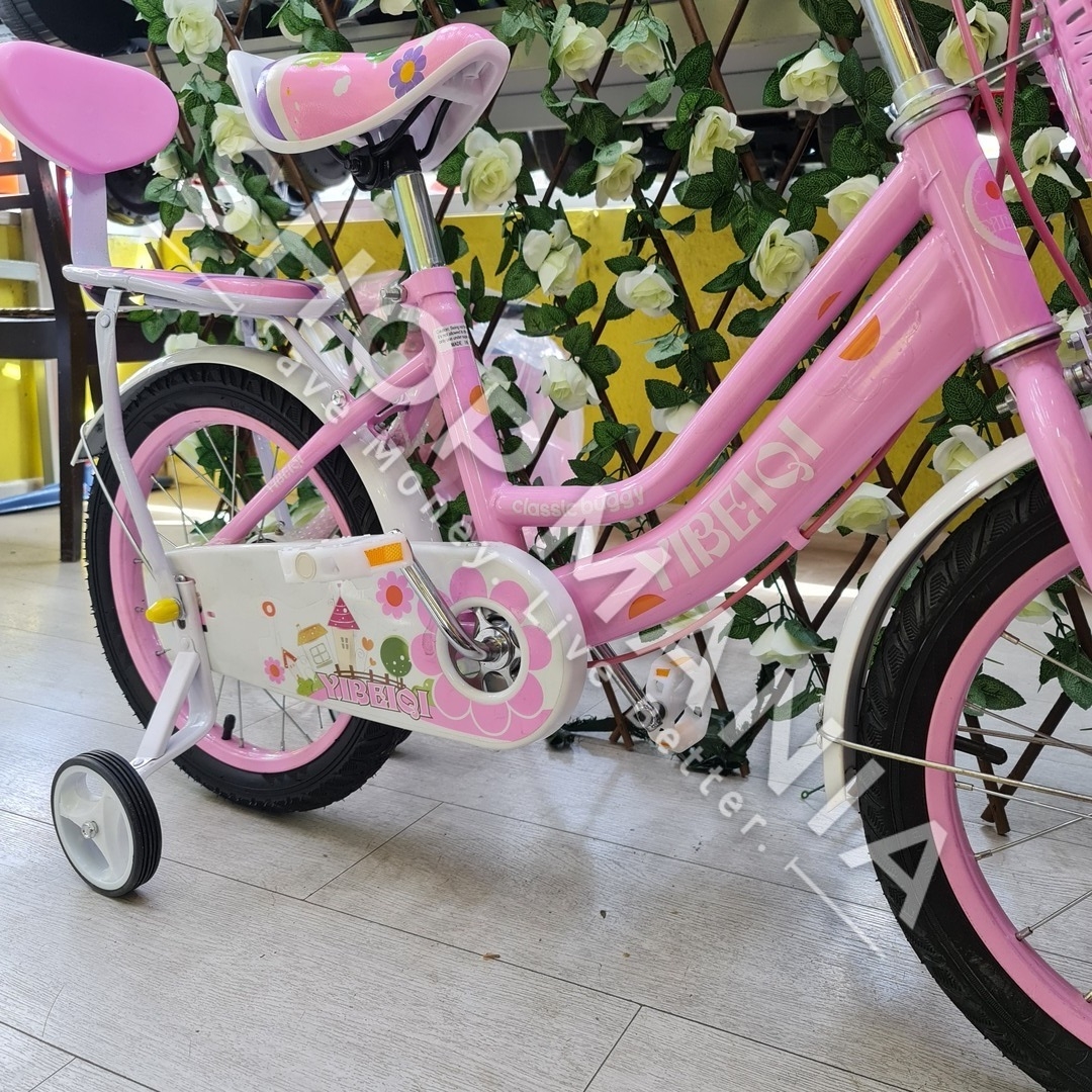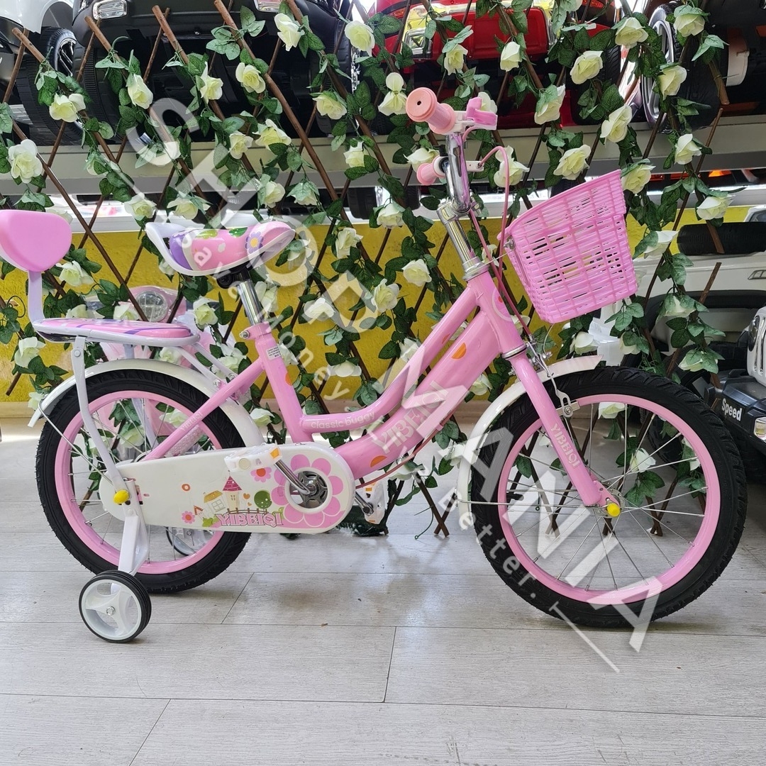Përshkrimi: Biciklete 16'' per vajza nga mosha 4-9 vjec.. Me strukture dhe disqe celiku me goma me ajer. Kjo biciklete vjen me rrota ndihmese per ta bere me te lehte guidimin nga femijet ne fazat e para. Gjithashtu ka nje kosh ne pjesen e perparme per te vendosur lodra ose sende te ndryshme. Shala eshte me mbushje te dyfishte per rehati maksimale te femijeve. Me skare ne pjesen pasme e pajisur me nje ulese te bute lekure me mbushje. Timoni ka nje gjatesi te pershtatshme sipas standarteve europiane me doreza silikoni te buta per duart delikate te femijeve