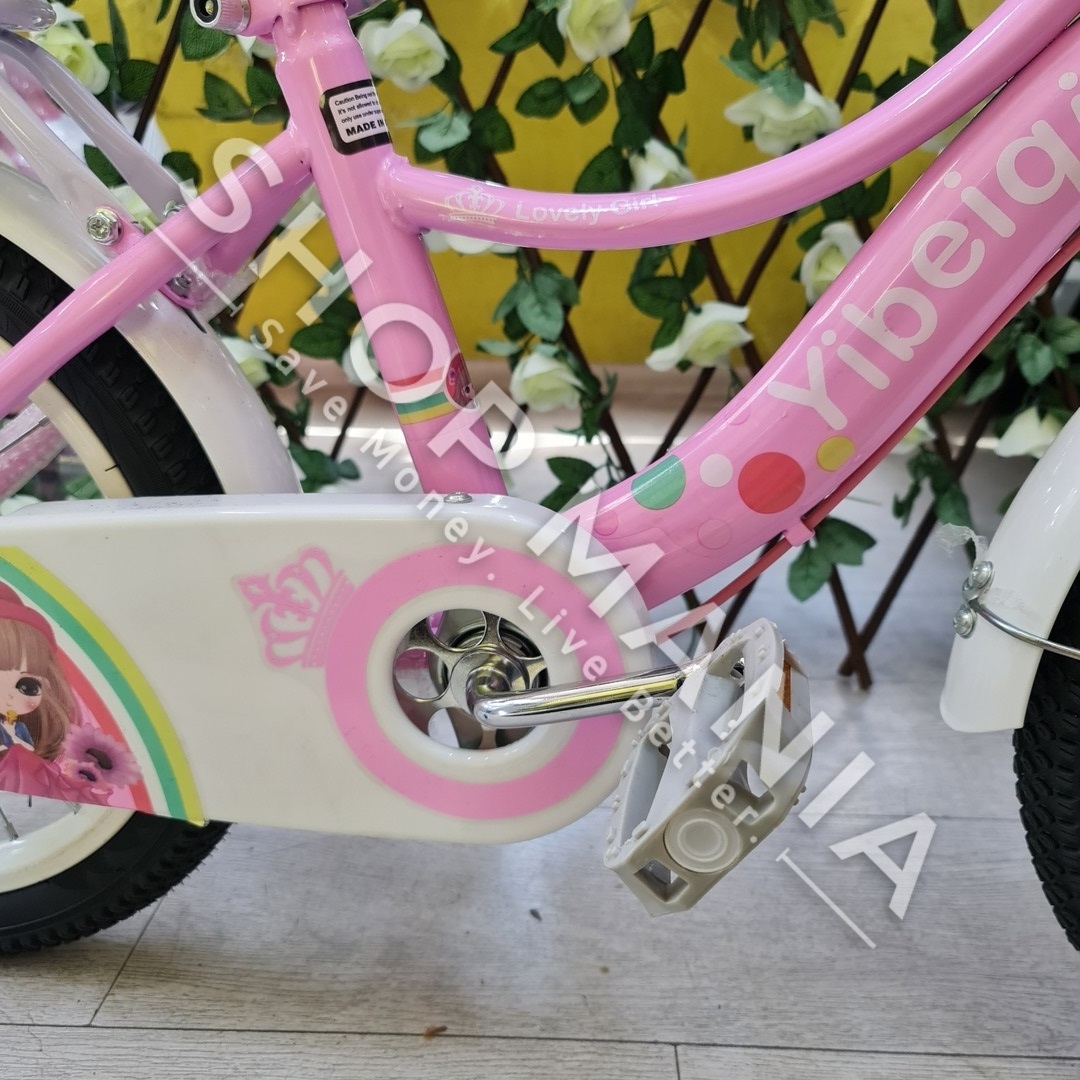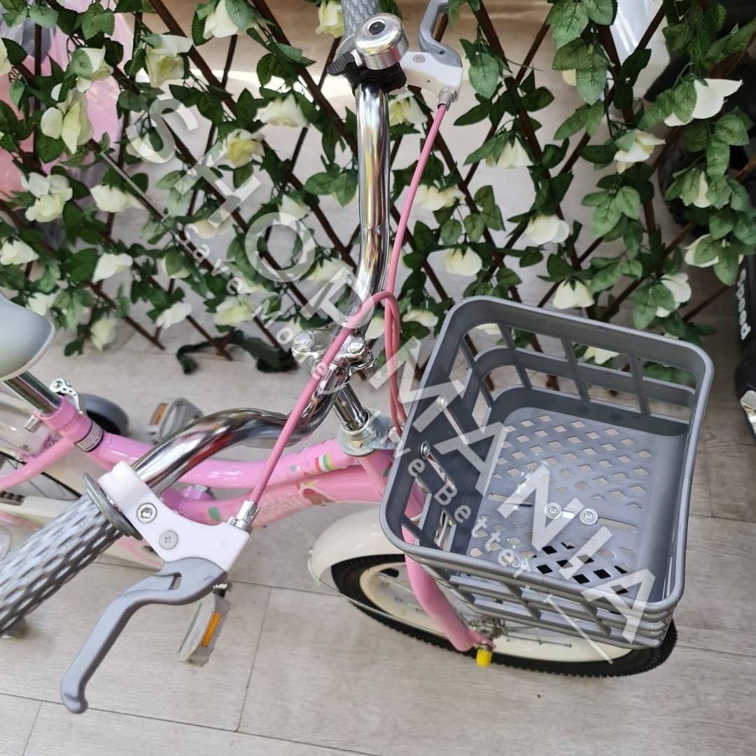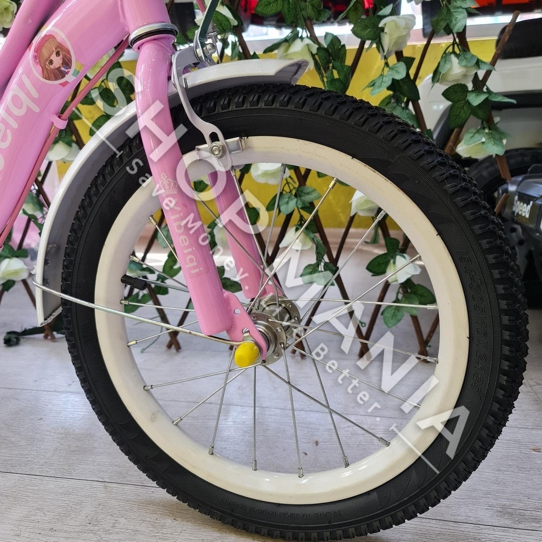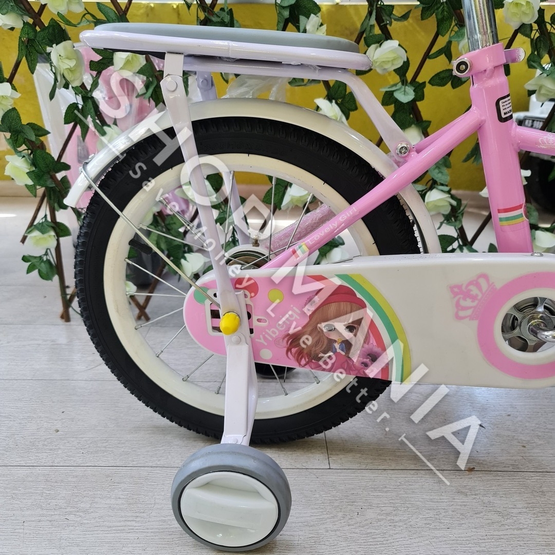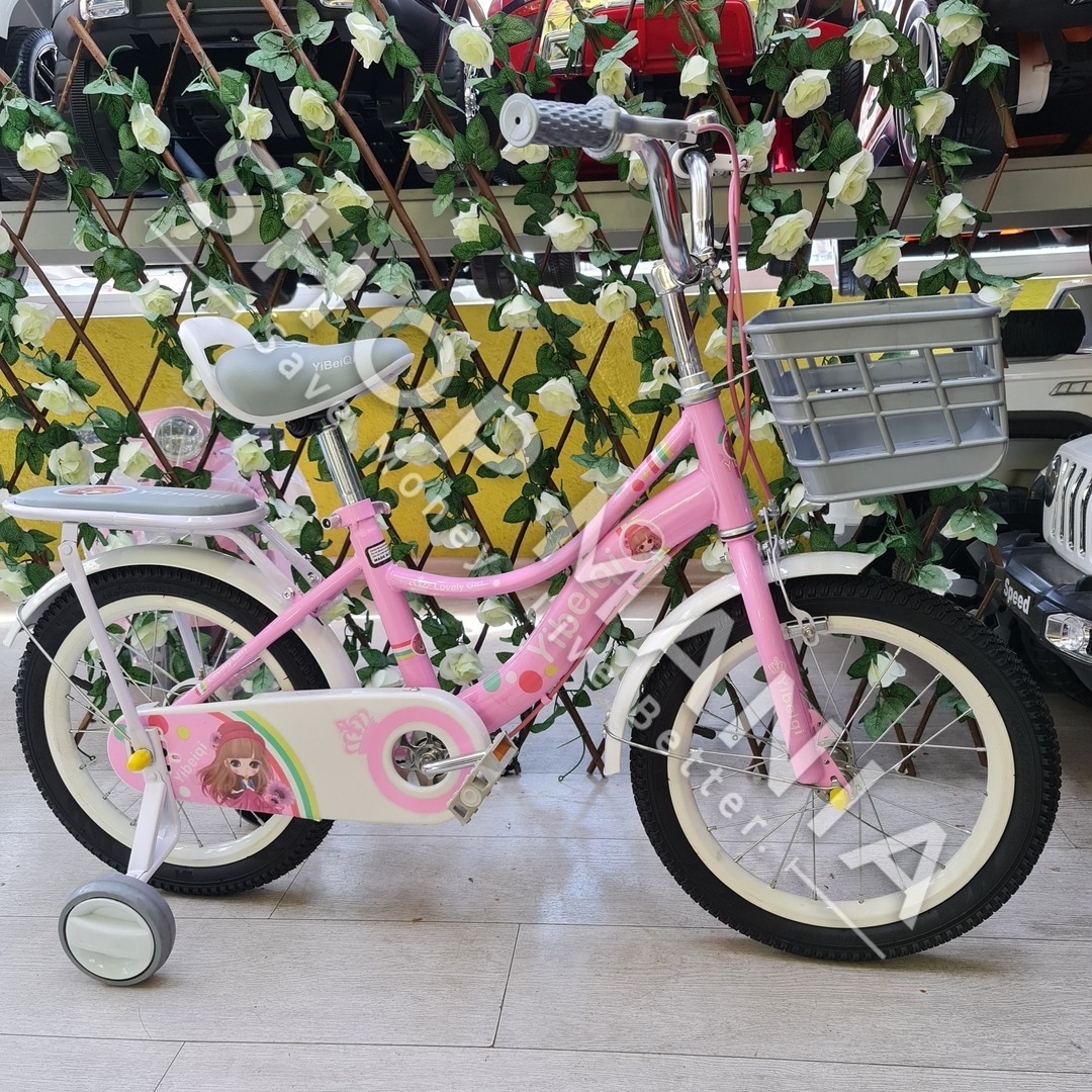 Përshkrimi: Biciklete 16'' per vajza nga mosha 4-9 vjec.. Me strukture dhe disqe celiku me goma me ajer. Kjo biciklete vjen me rrota ndihmese per ta bere me te lehte guidimin nga femijet ne fazat e para. Gjithashtu ka nje kosh ne pjesen e perparme per te vendosur lodra ose sende te ndryshme. Shala eshte me mbushje te dyfishte per rehati maksimale te femijeve. Me skare ne pjesen pasme e pajisur me nje ulese te bute lekure me mbushje. Timoni ka nje gjatesi te pershtatshme sipas standarteve europiane me doreza silikoni te buta per duart delikate te femijeve