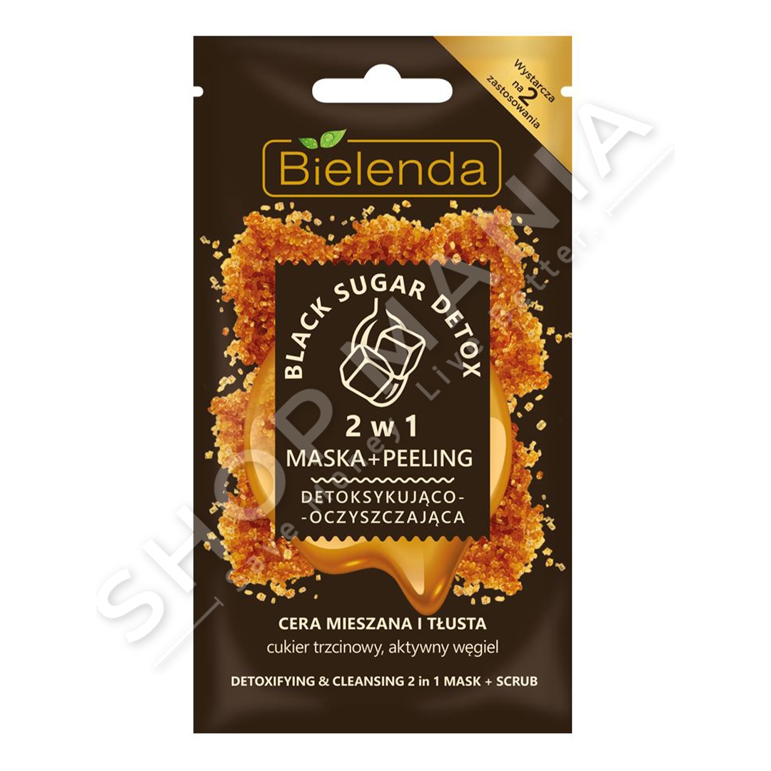 Maske detoksifikuese dhe pastruese Black Sugar Detox 2 in 1 permireson ne menyre efektive cilesine e lekures te kombinuar dhe te yndyrshme. Formula e bazuar ne kombinimin e sheqerit dhe karbonit, i siguron fytyres detoksifikim te forte, pastrim te lekures nga toksinat dhe hidratim optimal. Skrubi eksfolion qelizat e vdekura te lekures, duke zbutur lekuren dhe zhbllokon poret. Maska pastron, heq yndyrnat nga lekura, mbulon lekuren me shkelqim, thith yndyren e tepert, ngushton poret dhe parandalon pucrrat. Ajo shton vitalitetin, zbut dhe rikthen shkelqimin ne lekure.