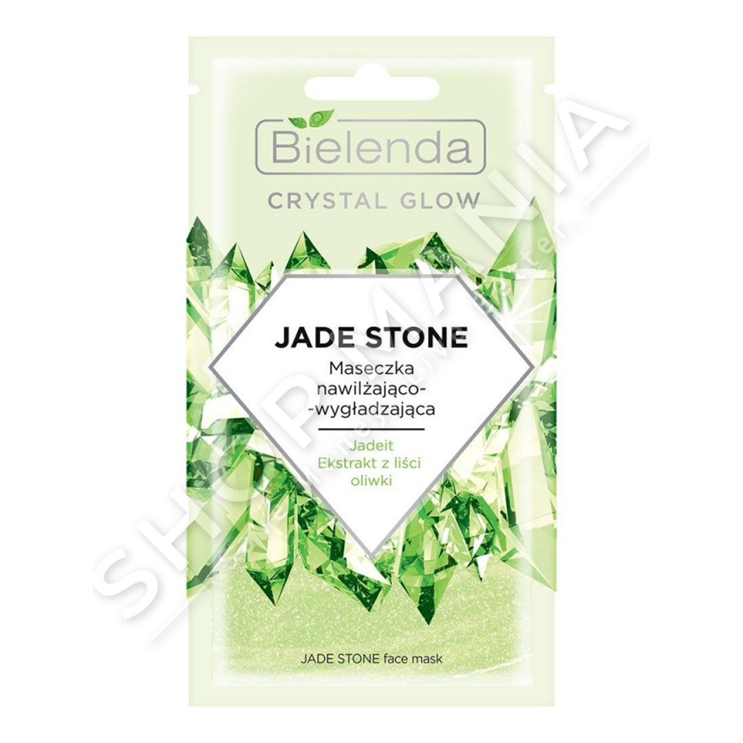 Maske per fytyren Crystal Glow Jade Stone kujdeset qe lekura te kete nje shkelqim natyral te gurit te cmuar Jade. Maska hidraton, freskon lekuren duke e lene ate te bute ne prekje dhe elastike. Me perberesit aktive: - Jadeit - ky gur i bukur dhe efektiv ka veti ndricuese dhe permireson elasticitetin e lekures. - Ekstrakti i gjetheve te ullirit - gjethet e kesaj peme te vogel kane veti te medha kozmetike si: antioksidimi, forcimi dhe zbutja e lekures.