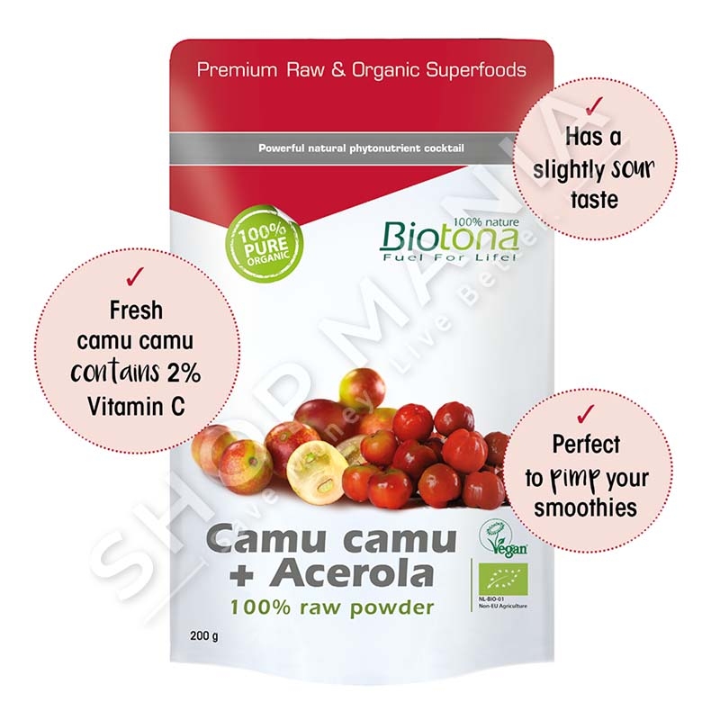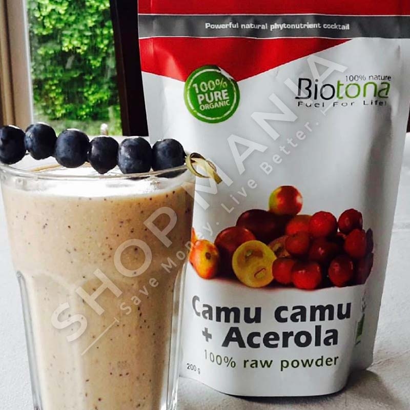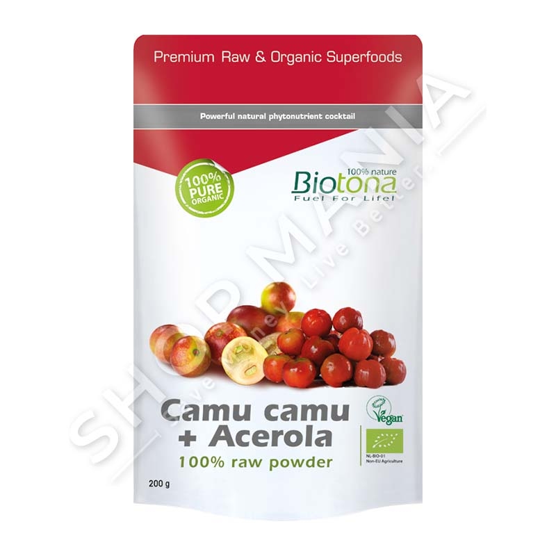 Biotona Camu camu dhe Acerola eshte perzierje 100% organike e ketyre frutave.