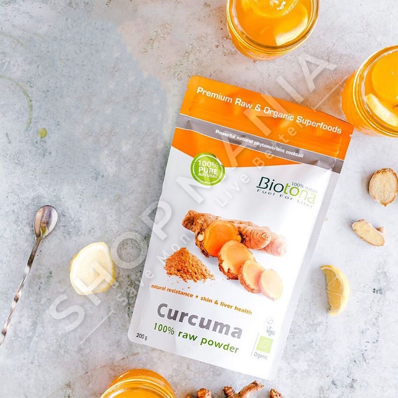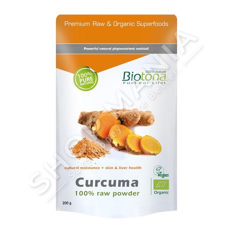 Biotona sjell per ju nje shumellojshmeri produktesh, qe jeta juaj te behet me e thjeshte dhe praktike. Curcuma, ose rrenja e verdhe ( Curcuma longa) e erezes aq shume te njohur, suporton fleksibilitetin dhe shendetin e artikulacioneve Gjithashtu eshte e dobishme per melcine pasi stimulon tretjen e yndyrnave. Ndihmon ne mbajtjen e nje lekure te shendetshme, si dhe per mirefunksionimin e sistemit nervor. Prania e antioksidanteve, lufton radikalet e lira dhe rrit rezistencen natyrale mbrojtese te trupit.