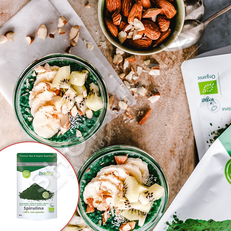 Spirulina eshte nje alge spirale jeshile qe rritet ne uje te kripur dhe eshte perdorur si burim ushqimor prej mijera vitesh.