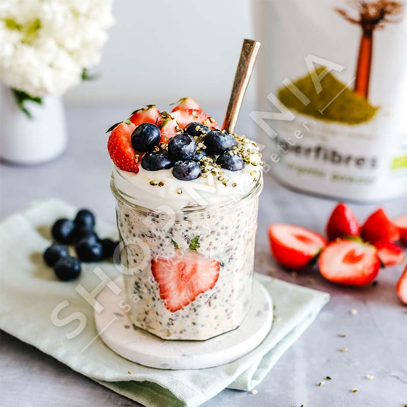 Fibre-rich powder made of acacia gum*, hemp seeds*, coconut flour*, cactus fig leaves*, baobab fruit pulp* and psyllium husks*.(Acacia senegal, Cannabis sativa, Cocos nucifera, Opuntia ficus-indica, Adansonia digitata, Plantago ovata) (THC-free)
