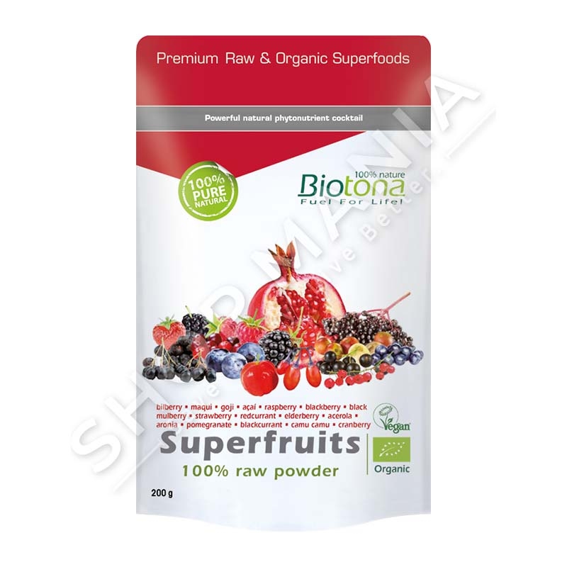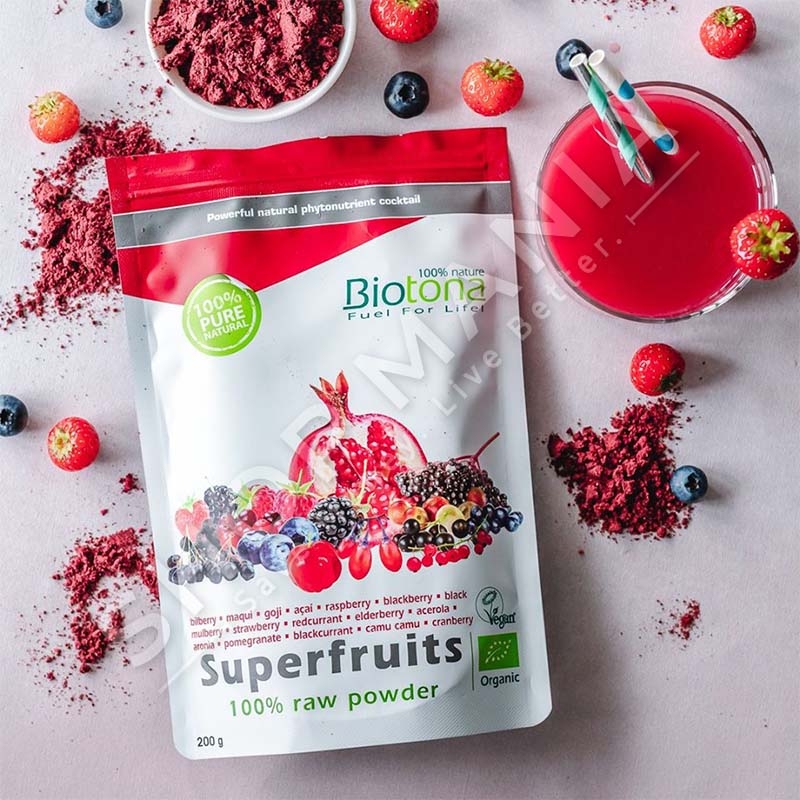 Superfrutat ne forme pluhuri, vijne nga Biotona me cilesine me te larte e cila ka perfshire boronicat dhe manaferrat me te mira ne bote.