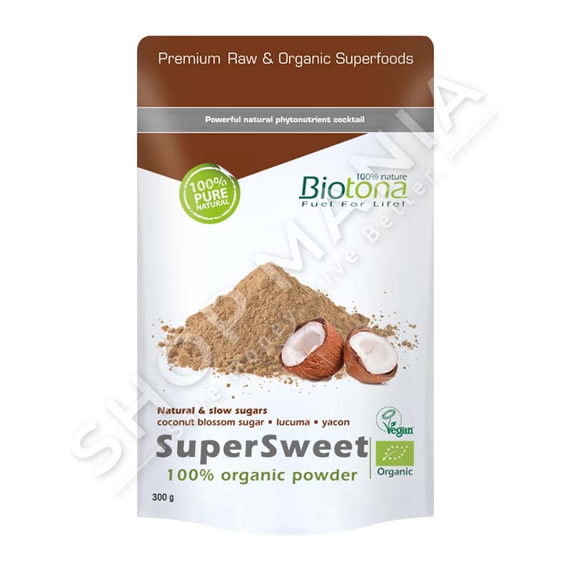 Biotona Bio Supersweet eshte nje alternative per sheqerin e rafinuar 100% organik, i cili i shton nje prekje delikate, te embel dhe te shendetshme te gjitha recetave tuaja.