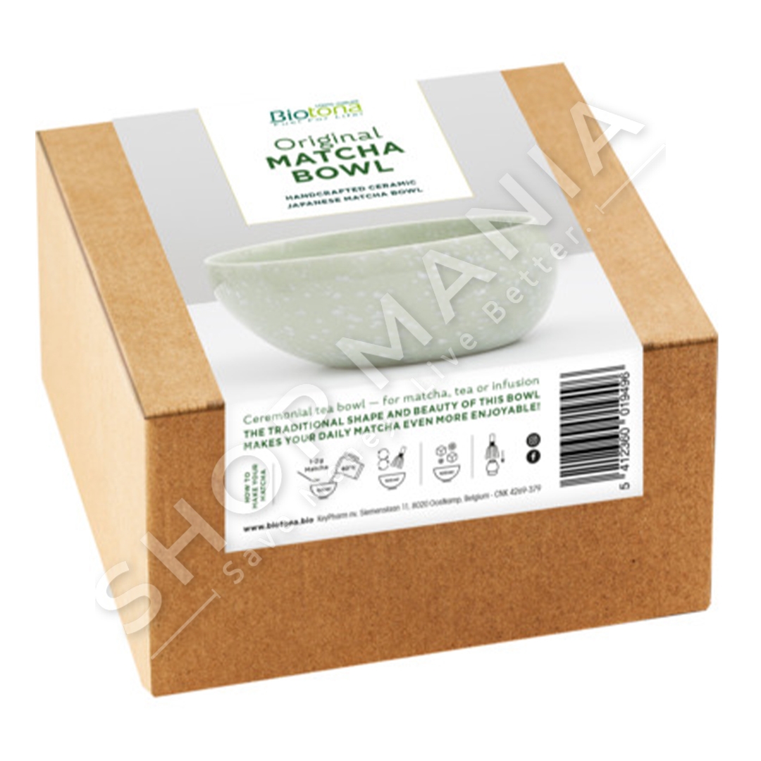 Biotona Matcha Bowl Green jane tasat ceremoniale te cajit, te huazuar nga tradita japoneze ne te cilen pirja e cajit ngrihet ne nje ceremoni te vertete caji.