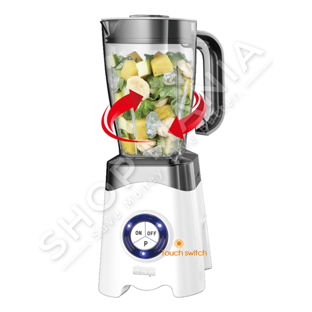 Blender 3 ne 1 me fuqi 250W, Me thika prej celik inoksi te cilesise se larte qe sigurojne copetim efikas te frutave dhe perimeve. Me disa menyra funksionimi: bluarje e shpejte intensive me shpejtesi te larte ose me menyre pulsuese. Me butonin ON/OFF me touch dhe me ndricim LED dhe me doreze ergonomike te enes qe siguron rehati maksimale ne perdorim. Me mbrojtje nga mbinxehjaMe baze me kembeza qe nuk rreshket. Ne set vjen se bashku me enen e madhe me kapacitet 1500 ml dhe nje gote me kapacitet 500 ml.