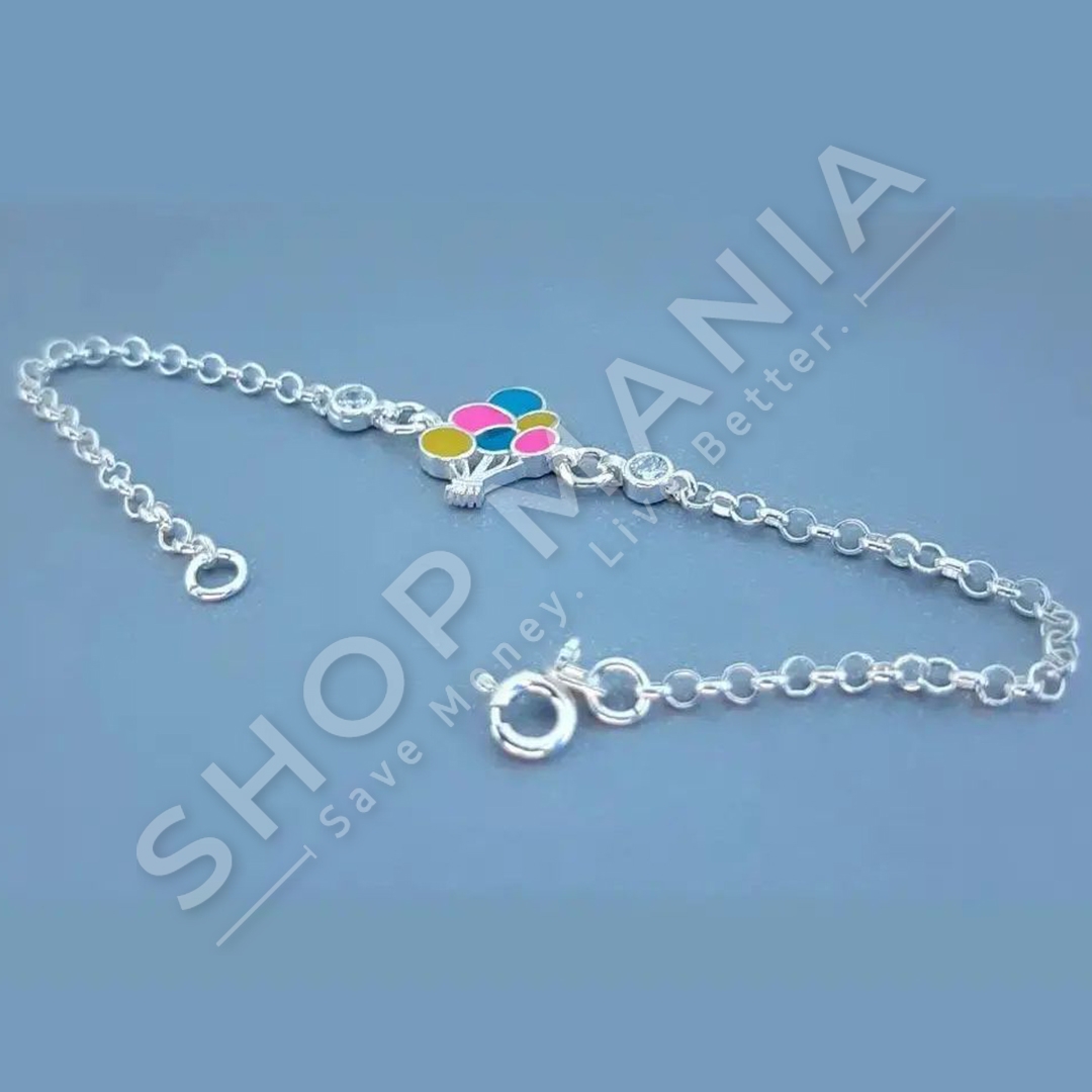 Byzylyk argjendi per femije me dizajn tullumbace me ngjyra roze, bojeqielli dhe te verdhe.