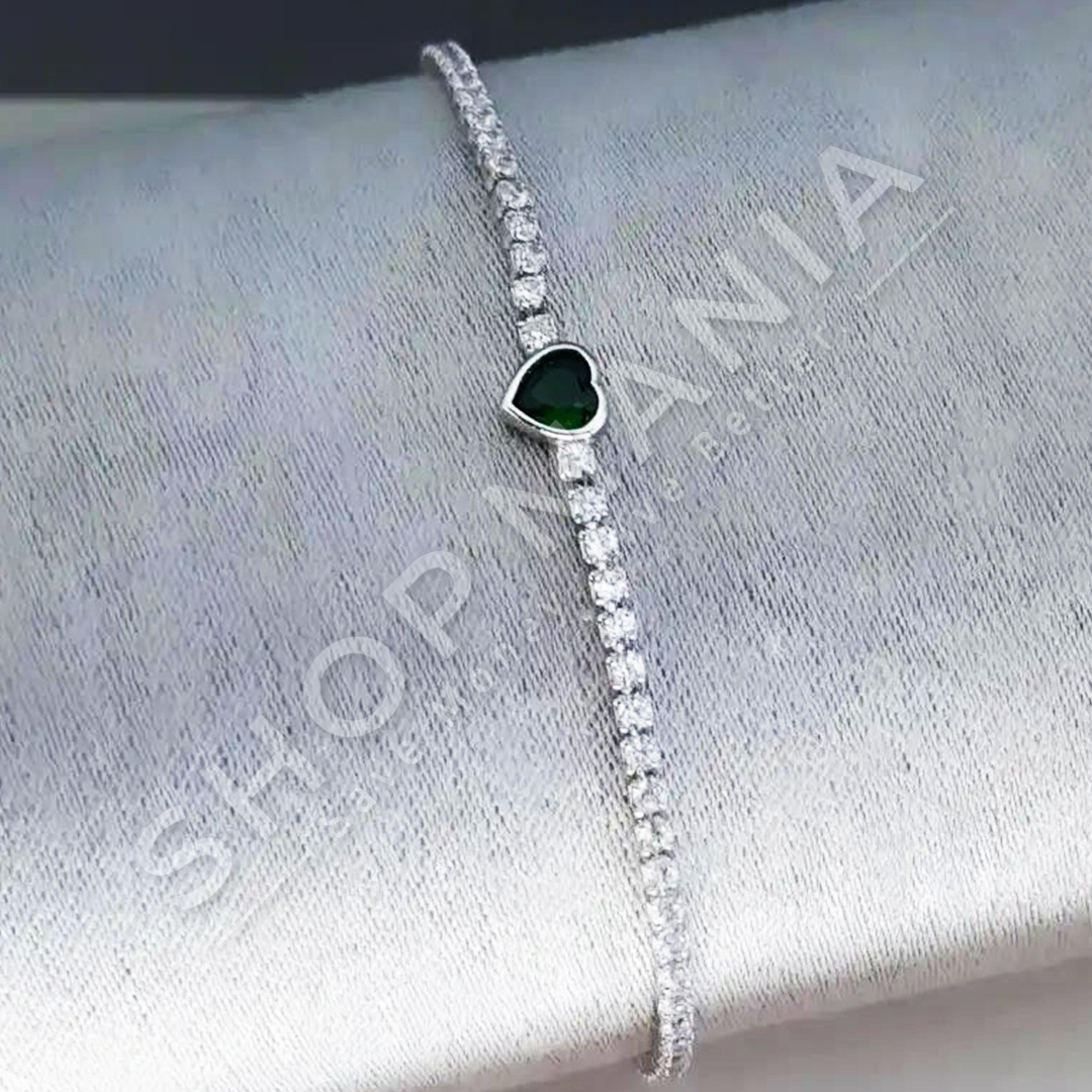 Byzylyk argjendi (Serm) me gur te vegjel zirkoni dhe dizajn zemre ngjyre jeshile.