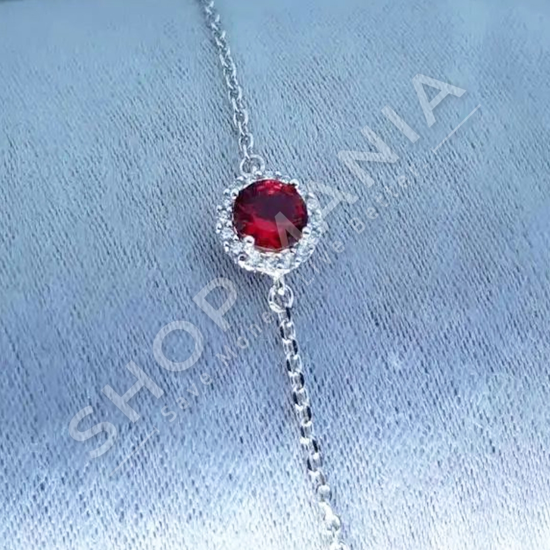 Byzylyk argjendi me gure zirkoni ngjyre te kuqe.