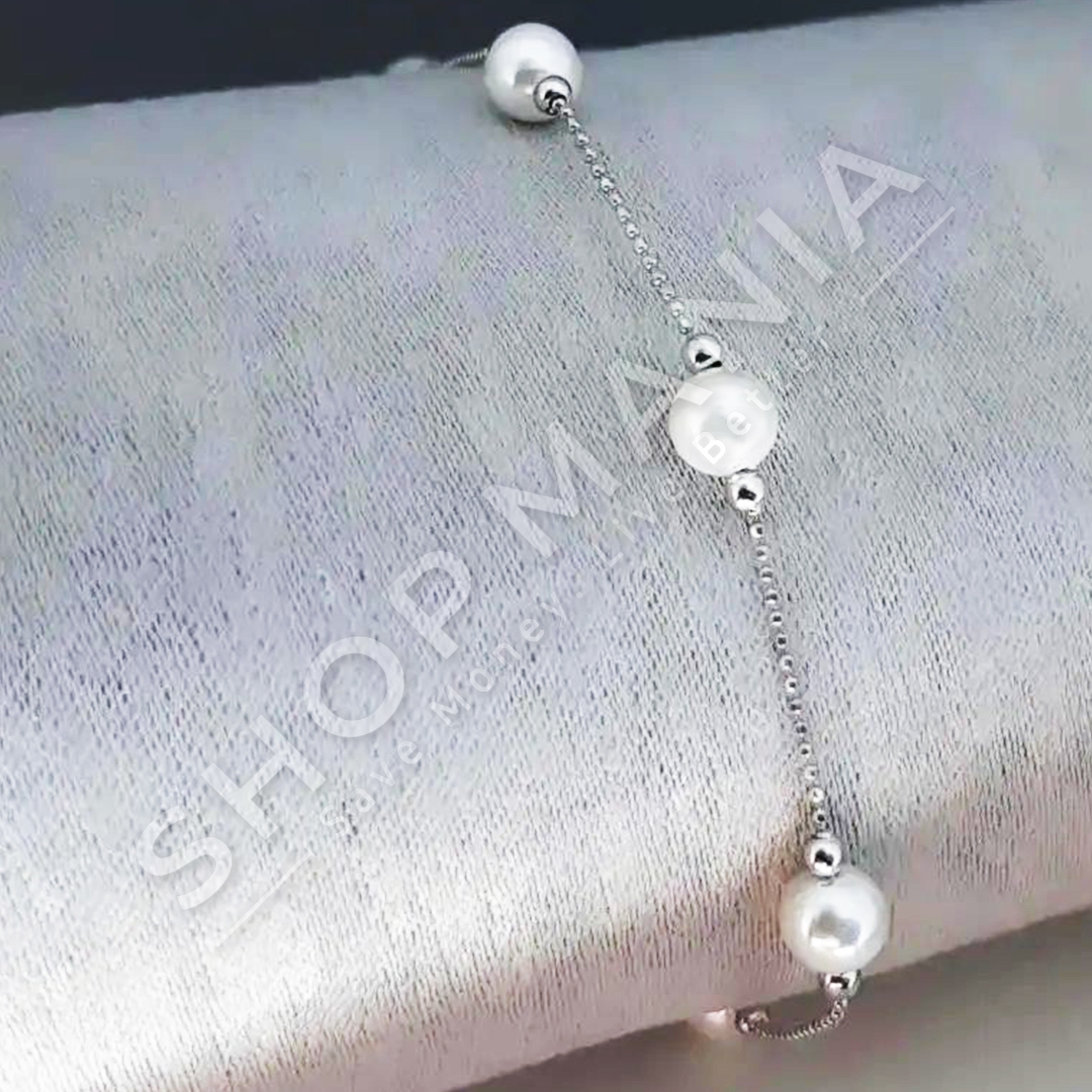 Byzylyk argjendi me gure ne forme perlash ngjyre te bardhe.