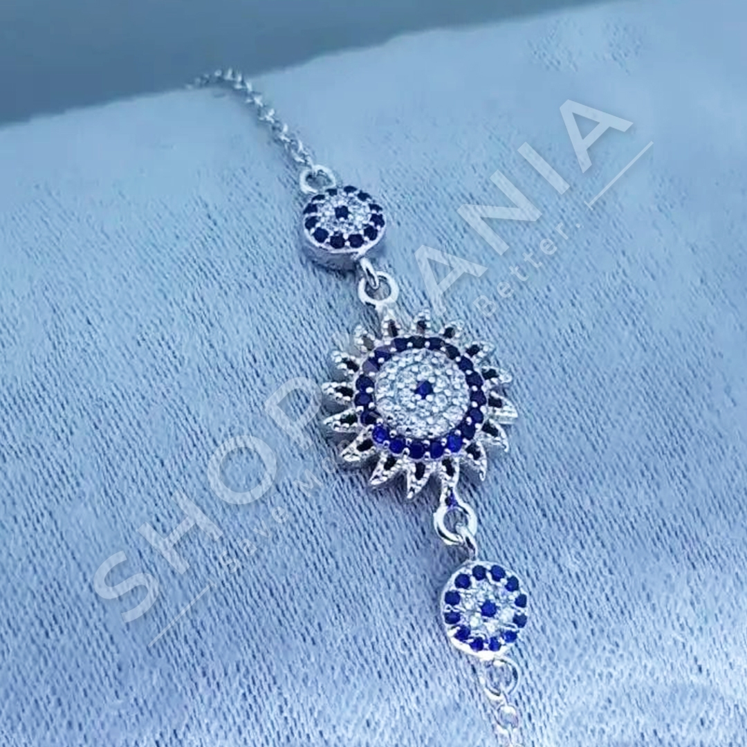 Byzylyk argjendi me gur zirkoni ngjyre blu dhe dizajn luleje eshte ai qe ju duhet per nje dhurate perfekte.