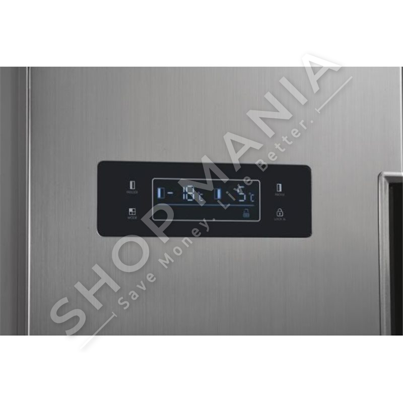 Numri i rafteve: 9 ne pjesen freskuese,4 nga te cilat jane vendosur tek porta + 2 kosha per fruta/perimet dhe 8 rafte ne zonen e ngrirjes, 4 vendosur tek porta + 2 kosha