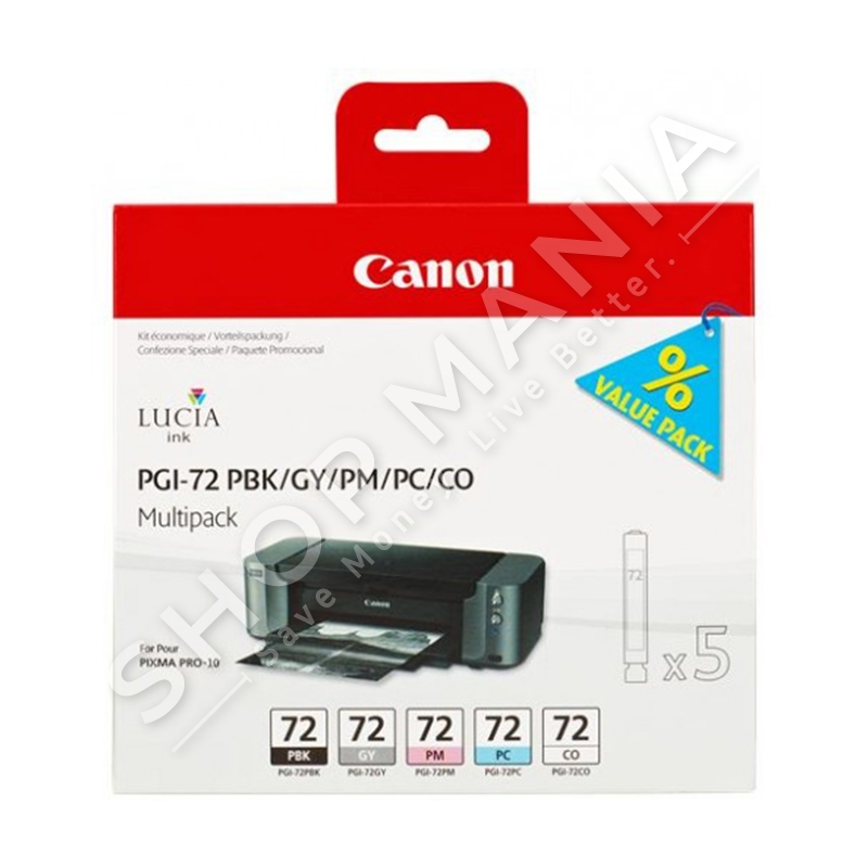 CANON - MULTIPACK NGJYRË E ZEZË/NGJYRË MAGENTA/NGJYRË E KALTËR/NGJYRË GRI/NGJYRË TRASPARENTE PGI-72MULTI1 6403B007 5 KARTUÇA PGI-72: PBK +GY +PM +PC +CO