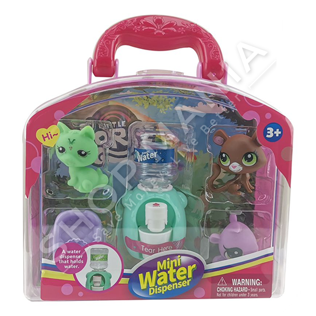 Ne cante perfshihet nje dispenser uji, 3 kafshe te vogla dhe nje tas per ushqyerje.