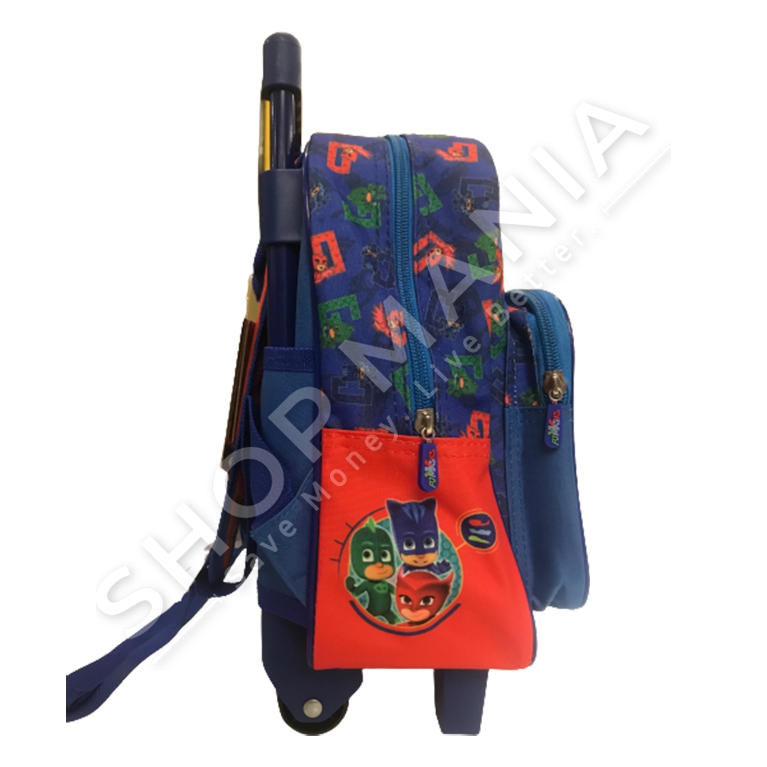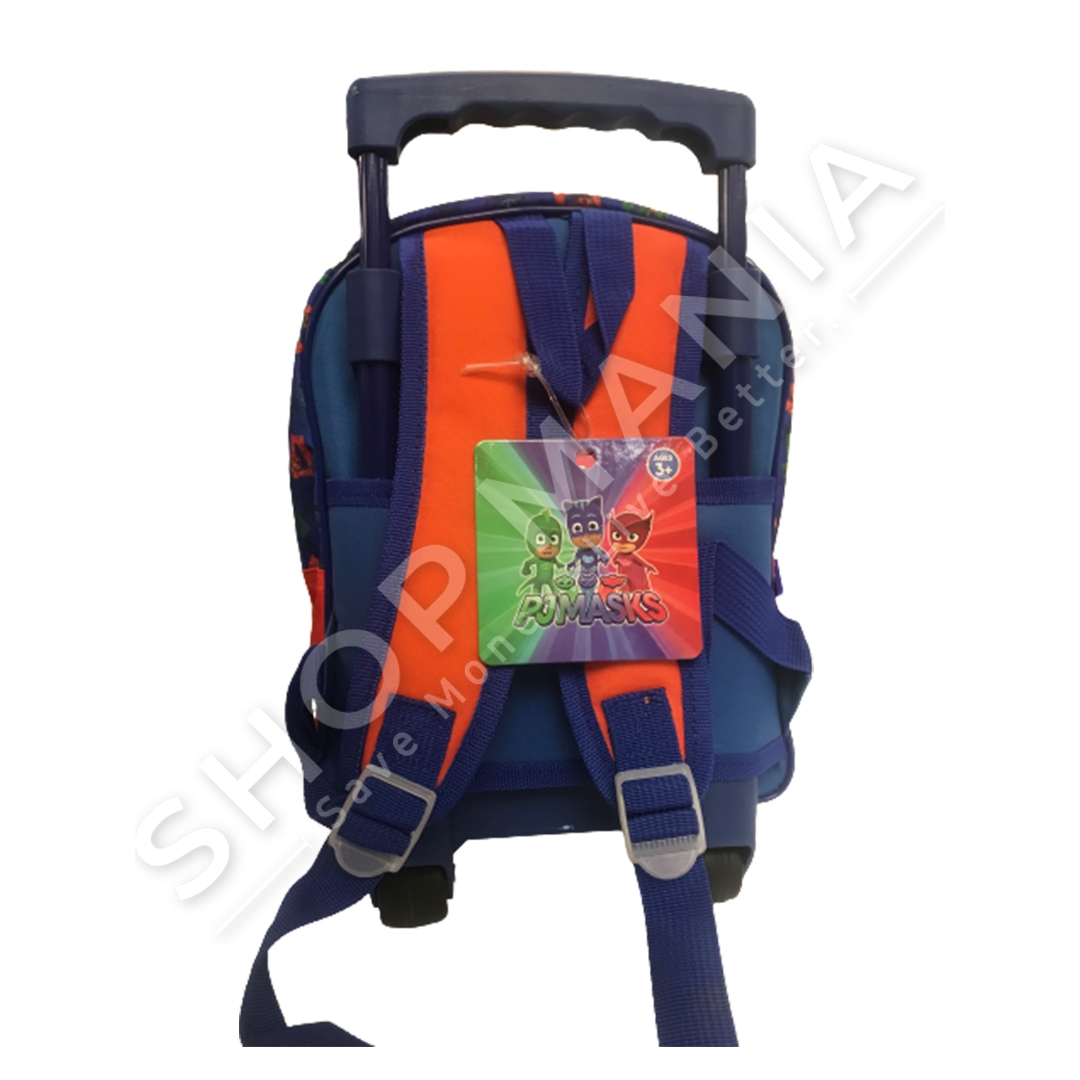 Cante parashkollori praktike dhe e kendshme me dizajn te personazheve kryesore 3 heronj te filmit vizatimor PJ Masks. Canta eshte e organizuar me nje ndarje me zinxhir dhe dy xhepa anesore per te vendosur shishen e ujit. Me nje xhep te madh per librat dhe fletoret dhe nje xhep te perparme per te vendosur mjetet dhe artikuj te tjere shkollore. Me nje doreze ne pjesen e pasme, e cila lehteson transportin me rrota, por ne te njejten kohe eshte e mundur ta mbani ate mbi shpatull fale rripave te shpatullave te rregullueshem me sfungjer.