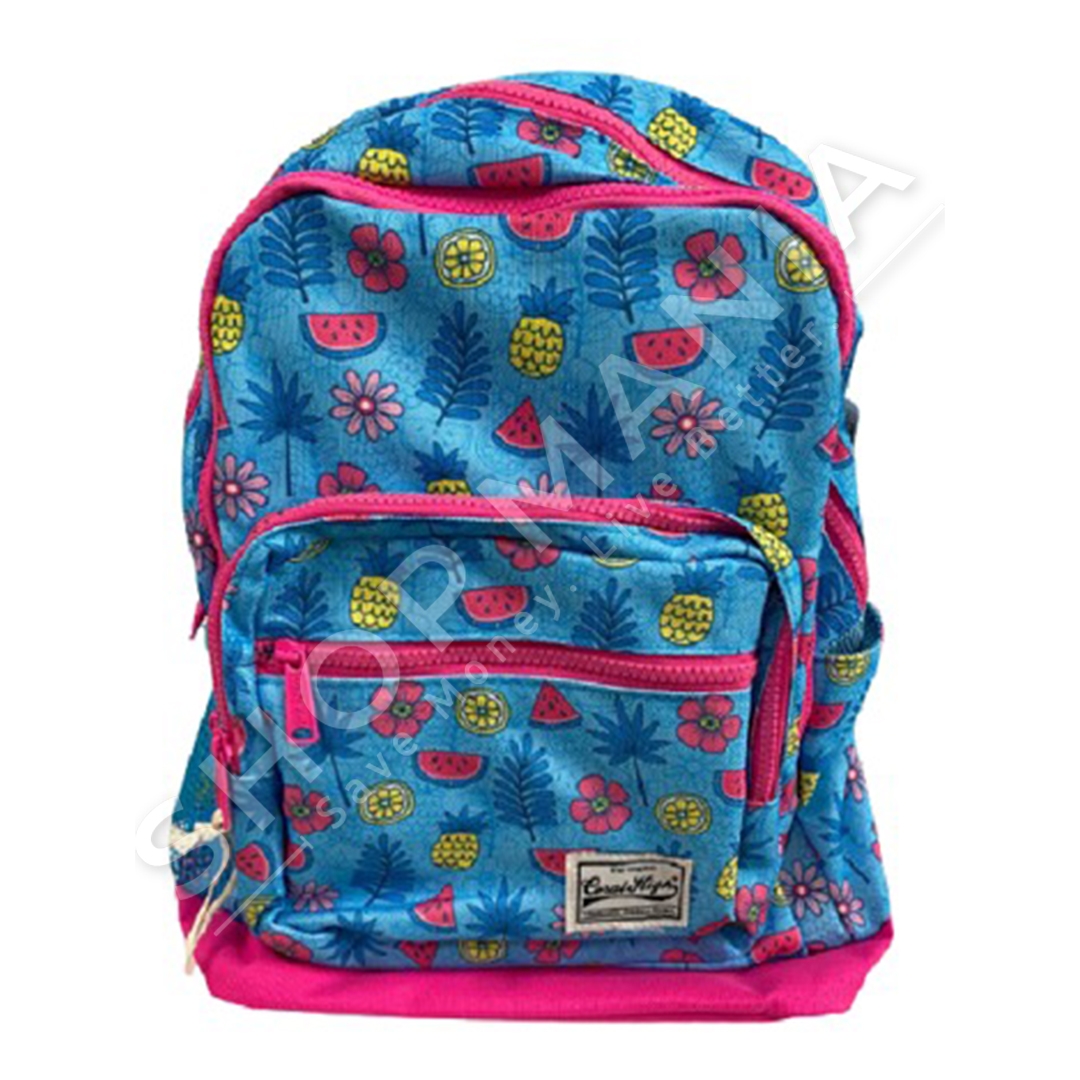 Cante shkolle me dizajn me fruta si: shalqi, ananas dhe lule te ndryshme ne ngjyre roze, bojeqielli, blu, e verdhe. Me nje xhep te madh me zinxhir dhe me dy xhepa me te vegjel per te vendosur mjetet dhe artikuj te tjere shkollore. Me rripa te rregullueshem me sfungjer qe nuk vrasin shpatullat dhe me xhepa anesore per te vendosur shishen e ujit.