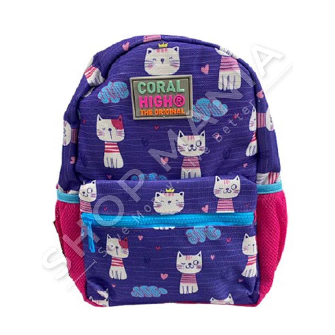 Cante shkolle me dizajn me mace ne ngjyre lejla, bojeqielli, roze, e bardhe. Me nje xhep te madh me zinxhir dhe me dy xhepa me te vegjel per te vendosur mjetet dhe artikuj te tjere shkollore. Me rripa te rregullueshem me sfungjer qe nuk vrasin shpatullat dhe me xhepa anesore per te vendosur shishen e ujit.