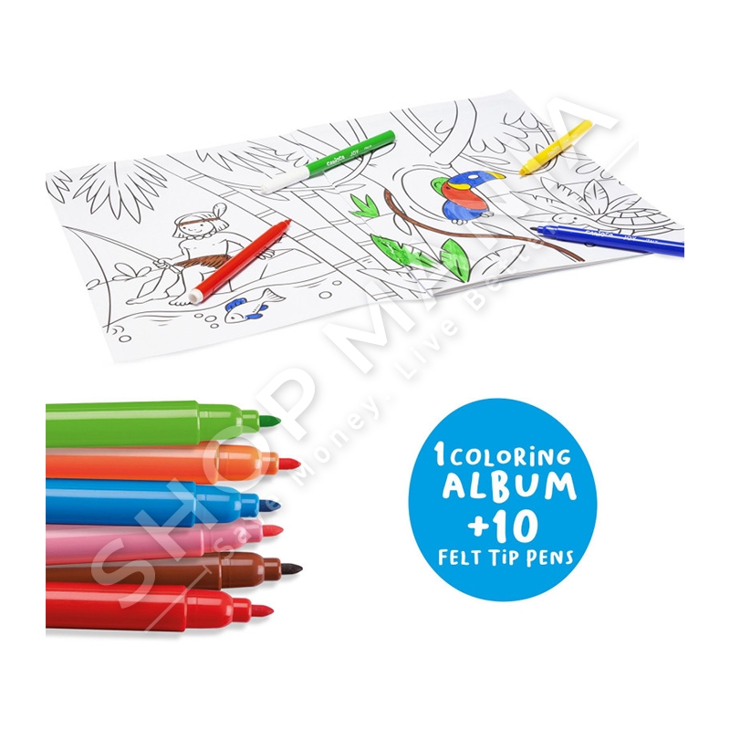 Kutia përmban një album me 16 fletë A4 nga të dyja anët për ngjyrosje dhe 10 ngjyra bojë uji