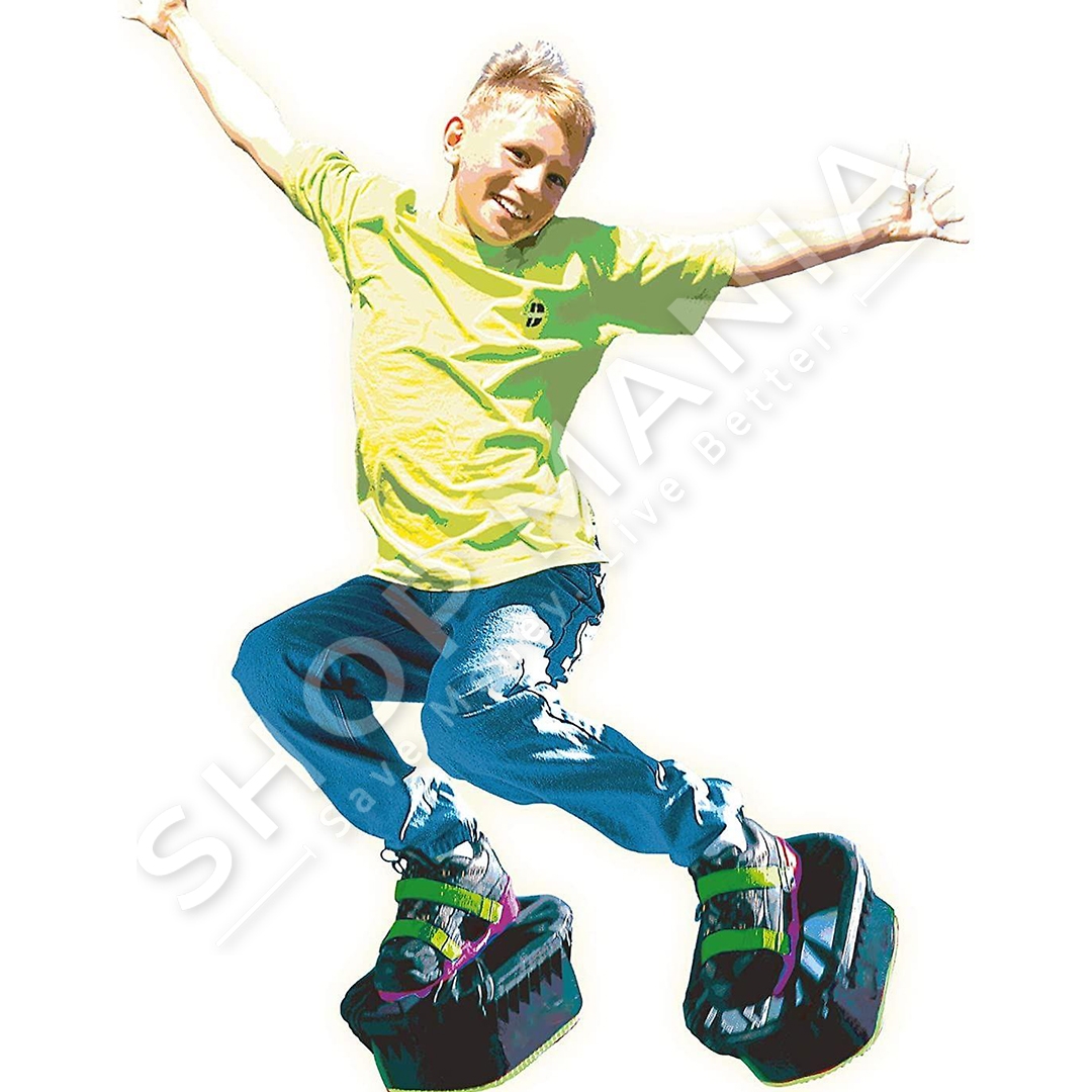 Kthejini kembet tuaja ne mini trampolina dhe "kundershtoni gravitetin" me kepucet Moon Shoes, pajisjen ikone kunder gravitetit te mundesuar nga femijet.