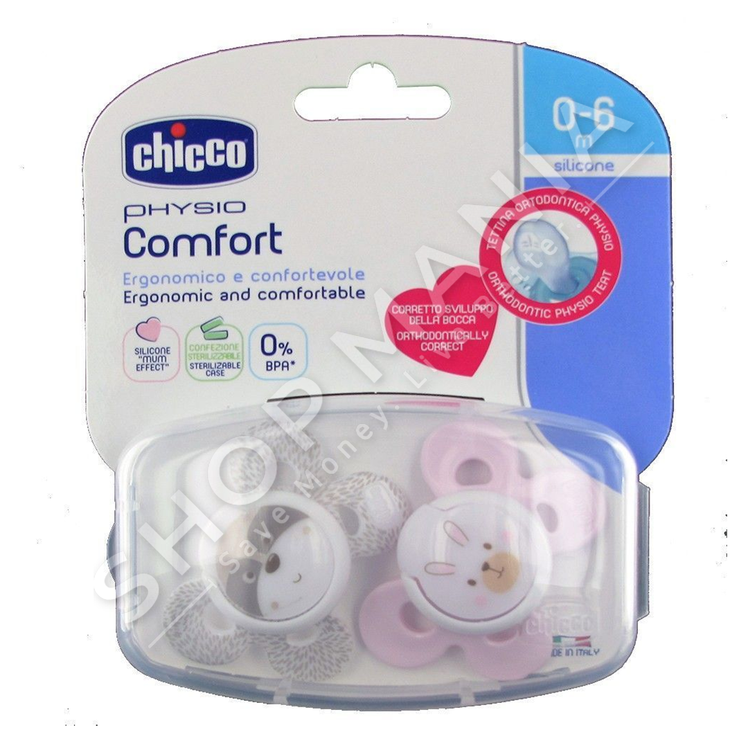 Përshkrimi: Femija juaj qan shume pasi eshte ne periudhen e daljes se dhembeve te pare? Jepini femijeve biberonat fallco "Chicco - Soother Physio Comfort Girl" qe ata te ndihen me mire dhe mos te grinden.