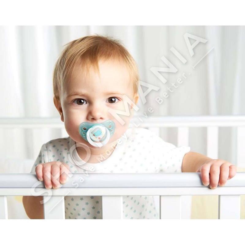 I pershtatshem per t'u perdorur pas vitit te pare te jetes, me paketim dysh, ngjyre blu / bojeqielli dhe me detaje te kendshme per te nxitur dhe individualitetin e femijes.