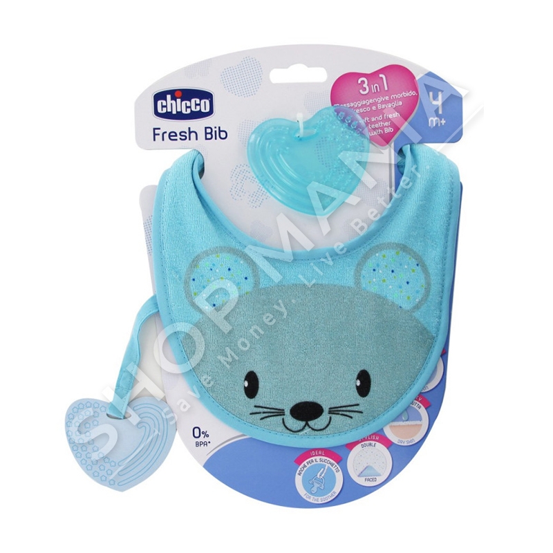 Gushorja me kruajtesen e dhembeve Chicco, me detaje te kendshme dhe me ngjyre bojeqielli e pershtatshme per t'u perdorur qe nga lindja.
